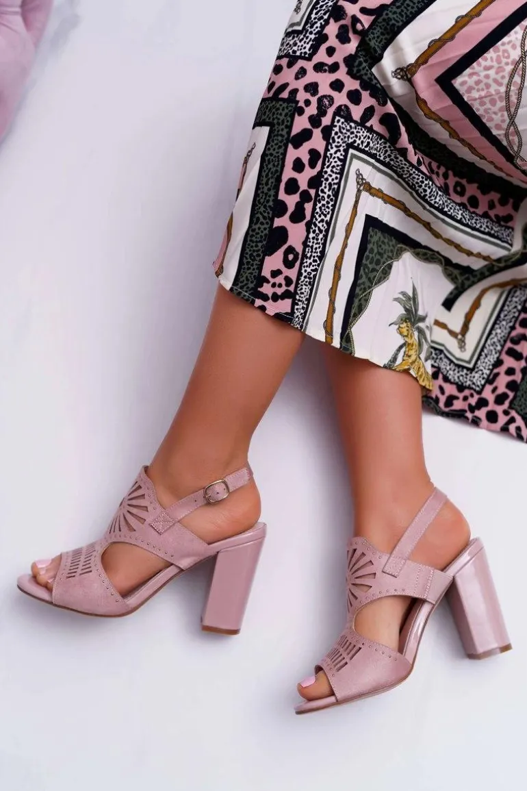 Sandały Damskie Na Słupku Sergio Leone SK852 Zamszowe Różowe Diven