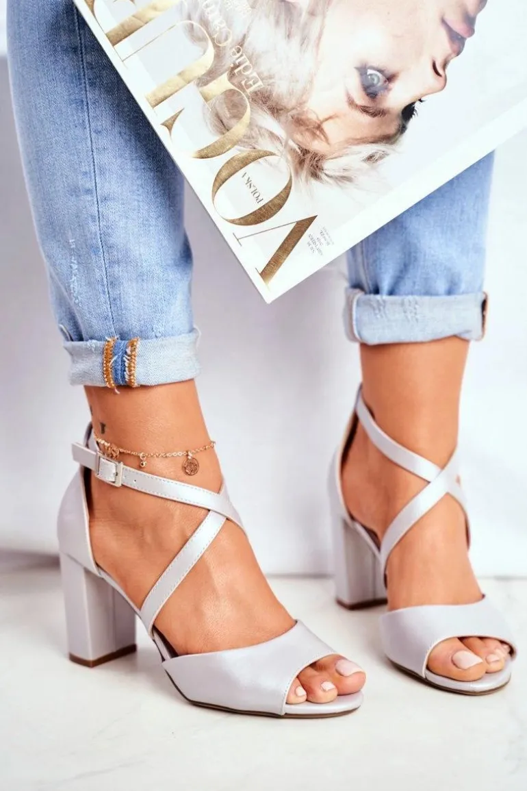 Sandały Damskie Na Słupku Sergio Leone Srebrna Perła SK865
