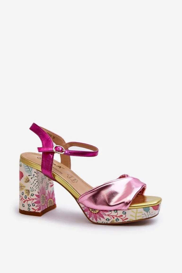 Damskie sandały ozdobione delikatnym kwiatowym wzorem, który dodaje im uroku i kobiecego wdzięku. Osadzone na stabilnym słupkowym obcasie, gwarantują stabilność na każdym kroku. Regulowany pasek ze sprzączką pozwala na precyzyjne dopasowanie do stopy. Miękka, skórzana wkładka zagwarantuje wygodę podczas noszenia. Ten elegancki fason koniecznie musi być Twój! Przy wyborze rozmiaru prosimy sugerować się poniższą tabelą rozmiarów.