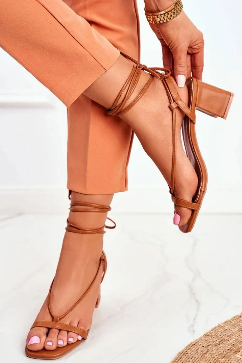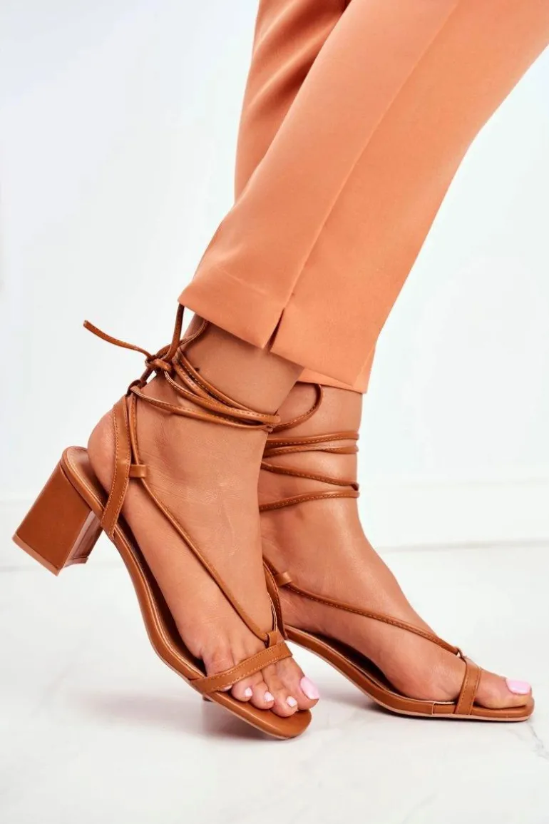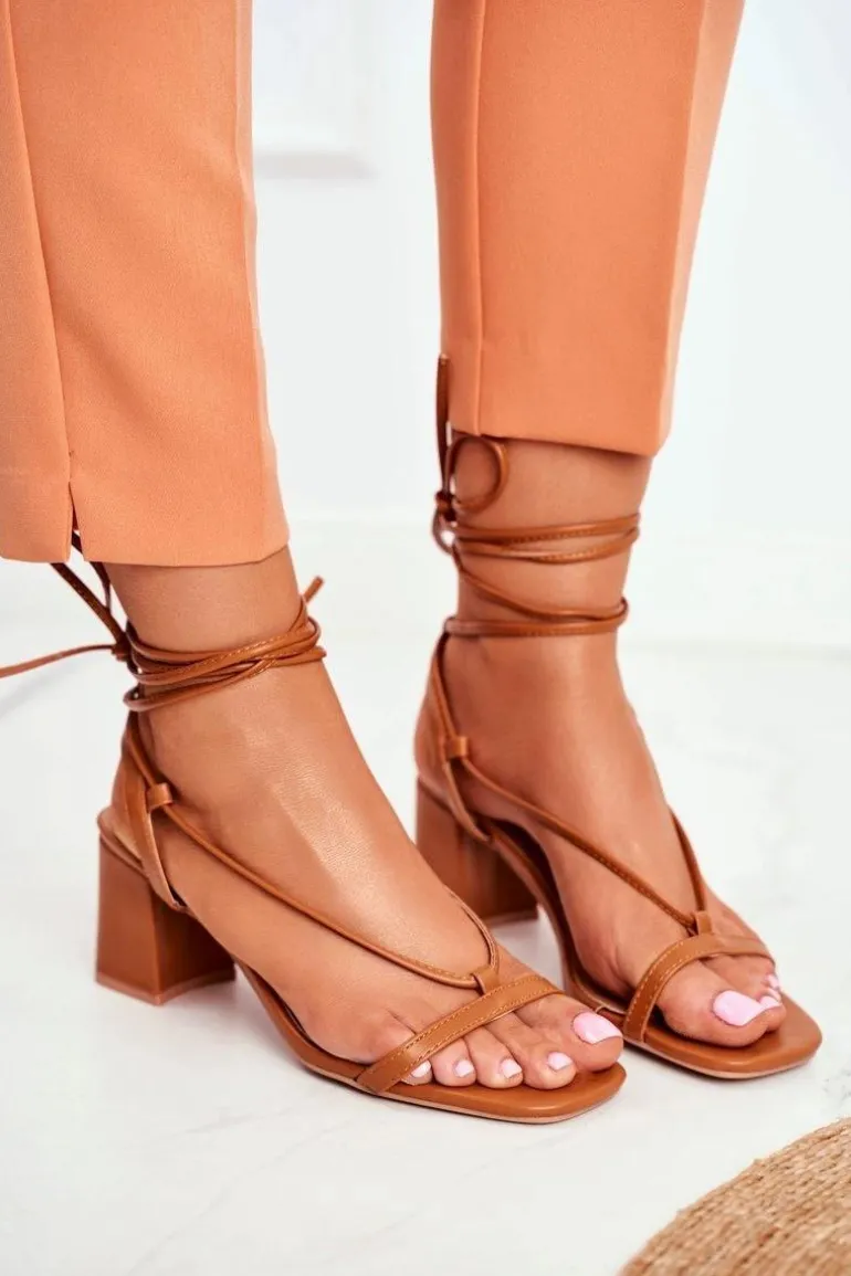 Sandały Damskie Na Słupku Wiązane Camel Morning