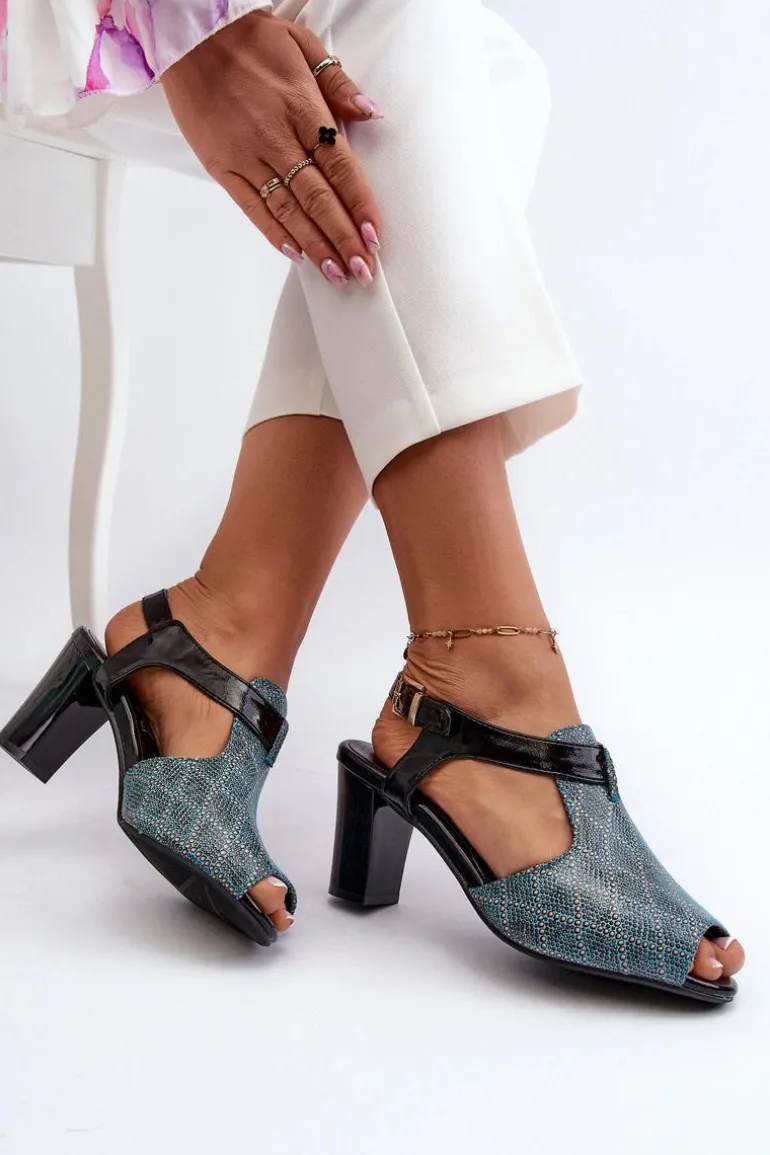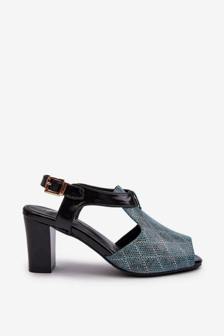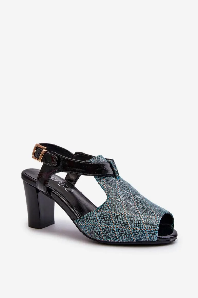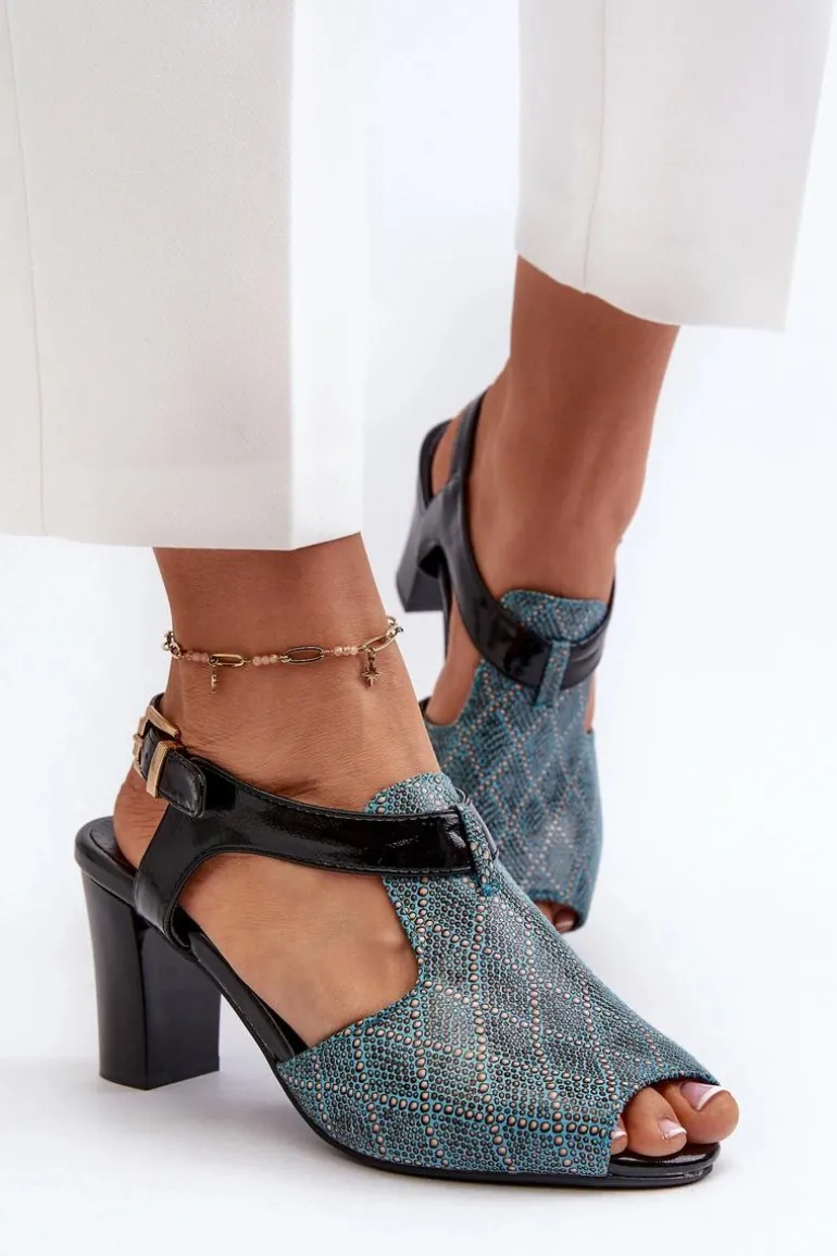 Sandały Damskie Na Słupku Z Eko Skóry Turkusowe Queenmarie