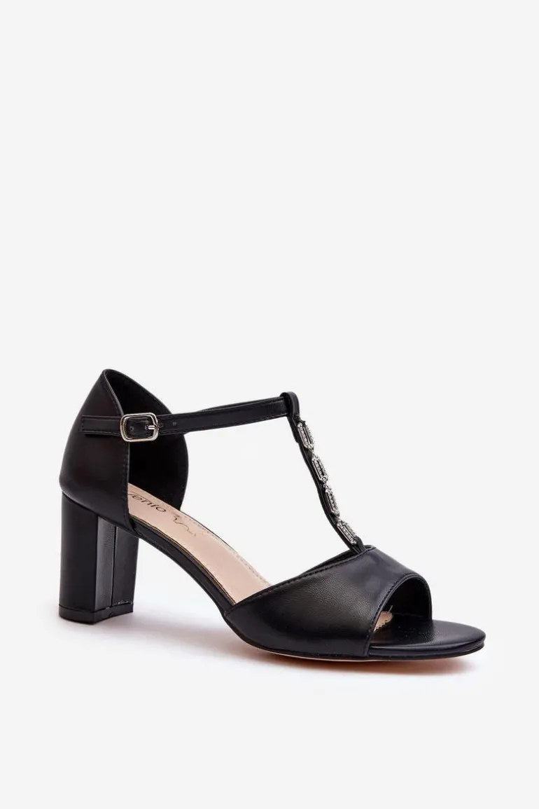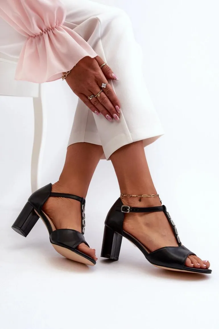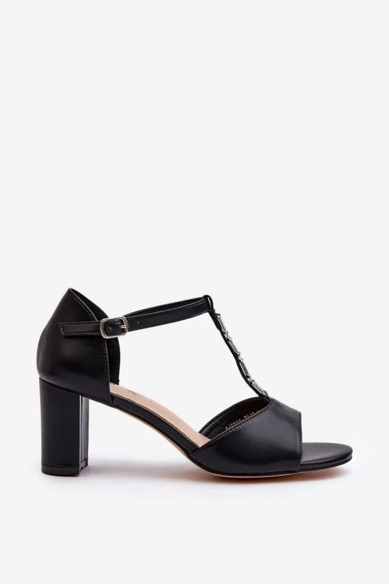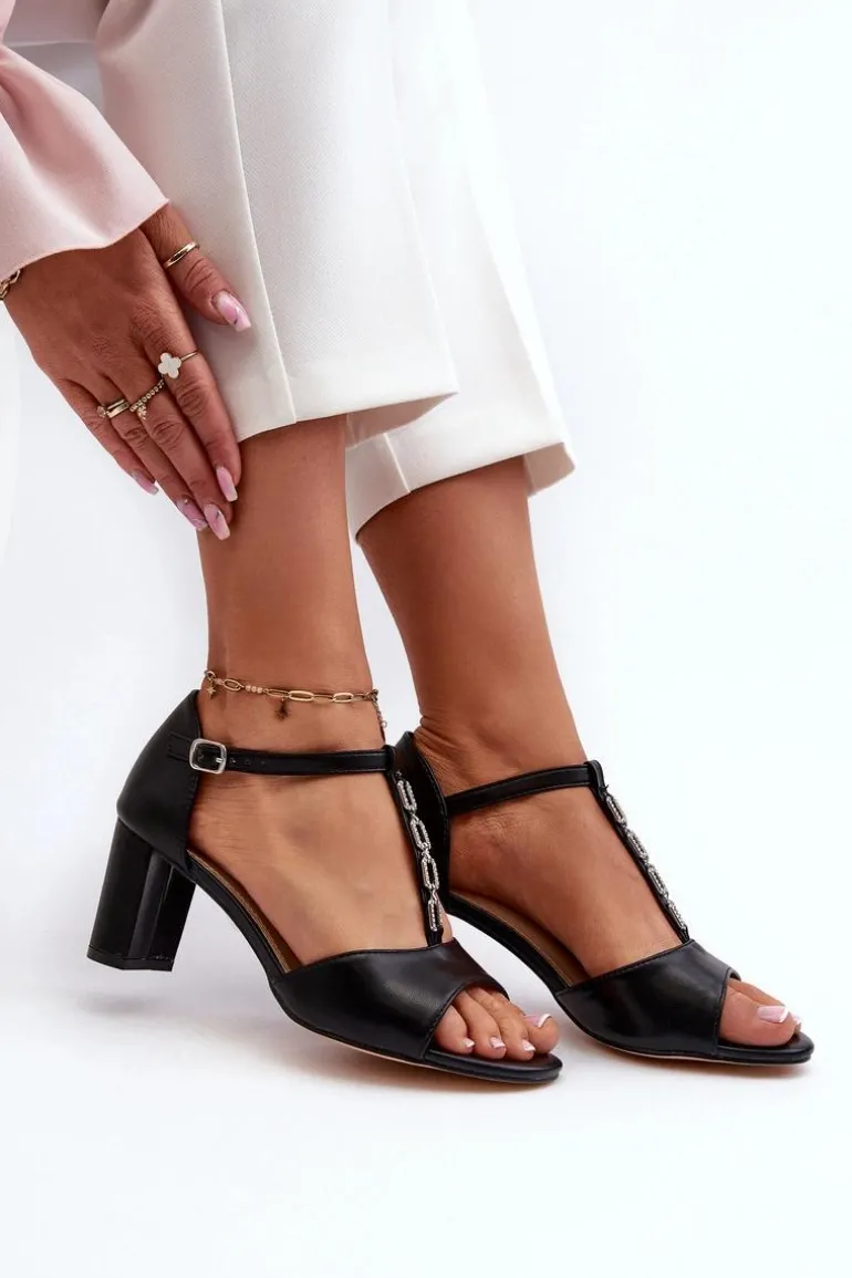 Sandały Damskie Na Słupku Z Ozdobnym Paskiem Eko Skóra Czarne Triavera