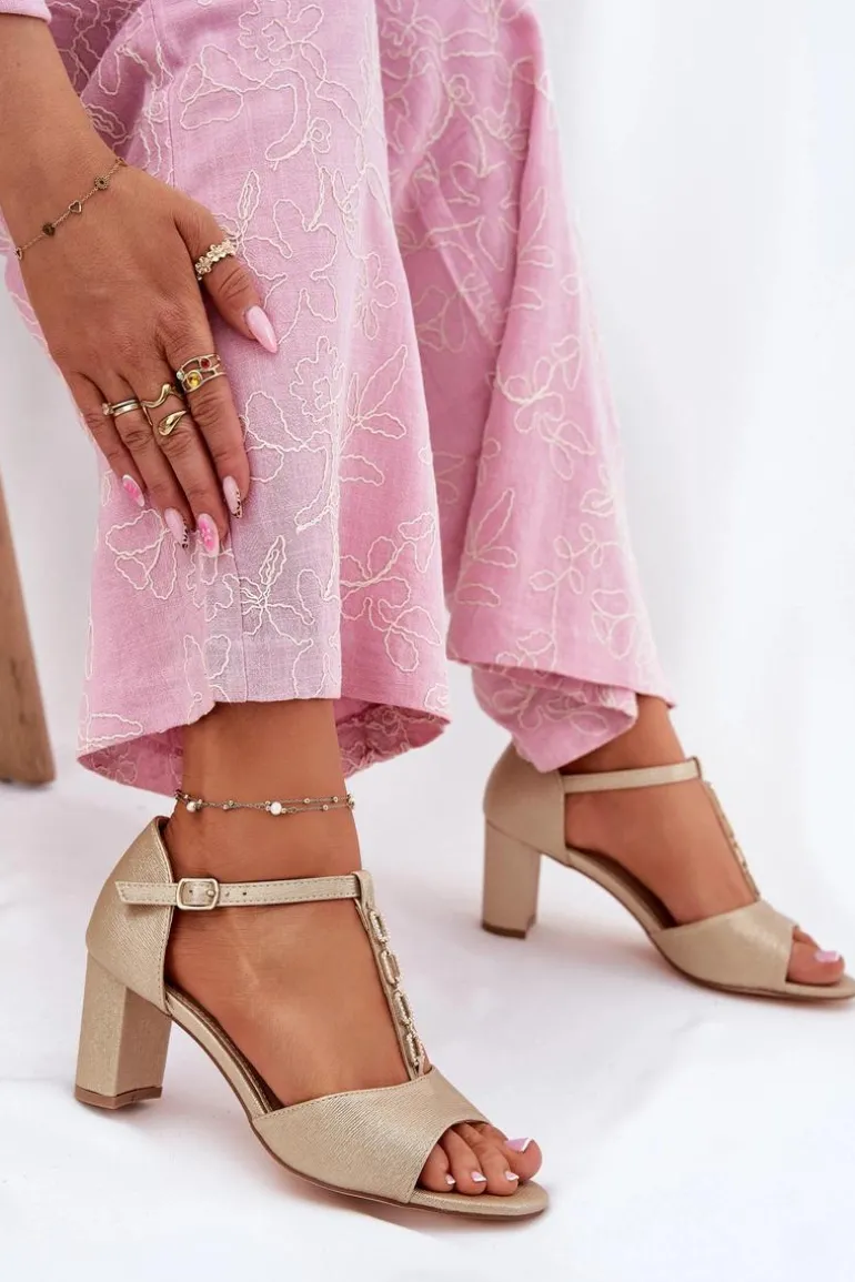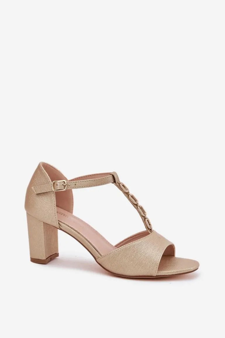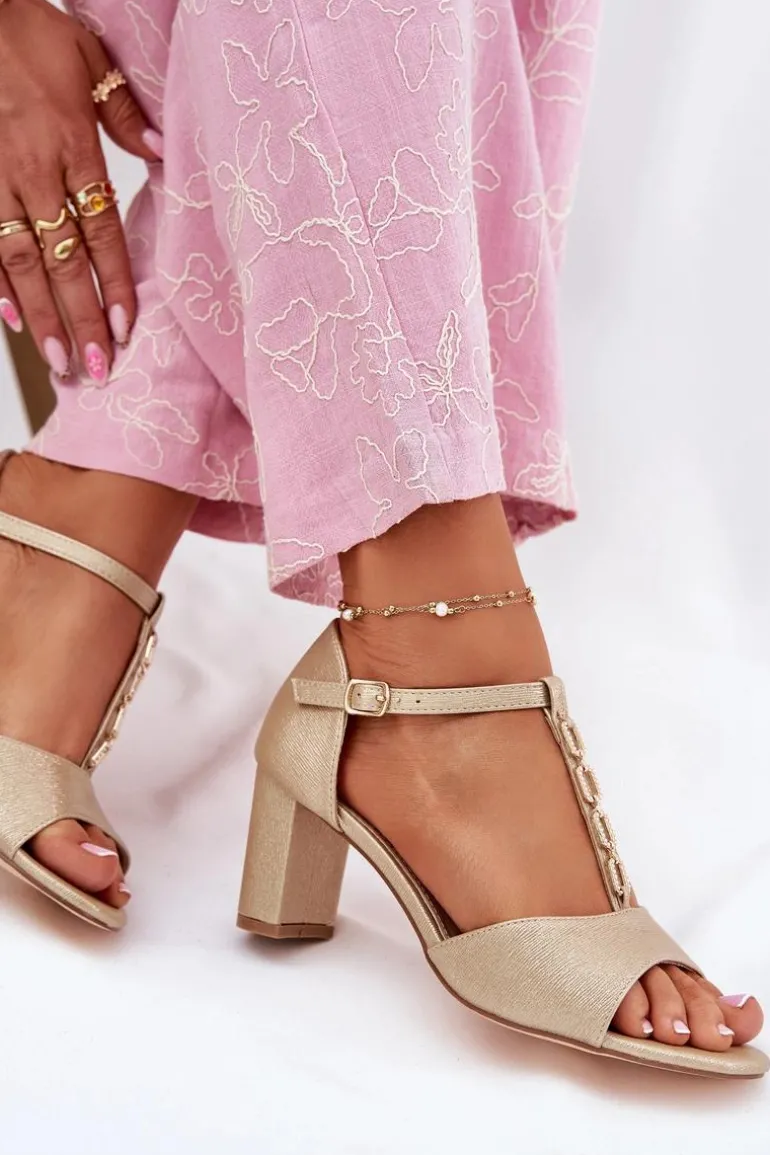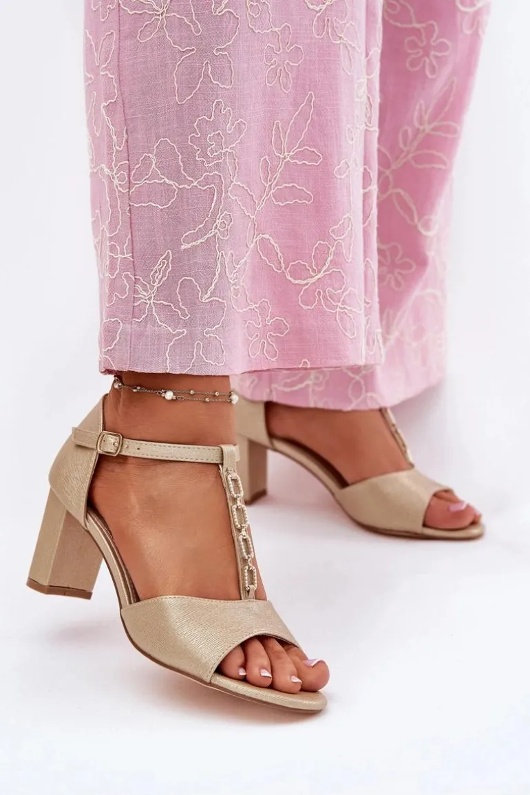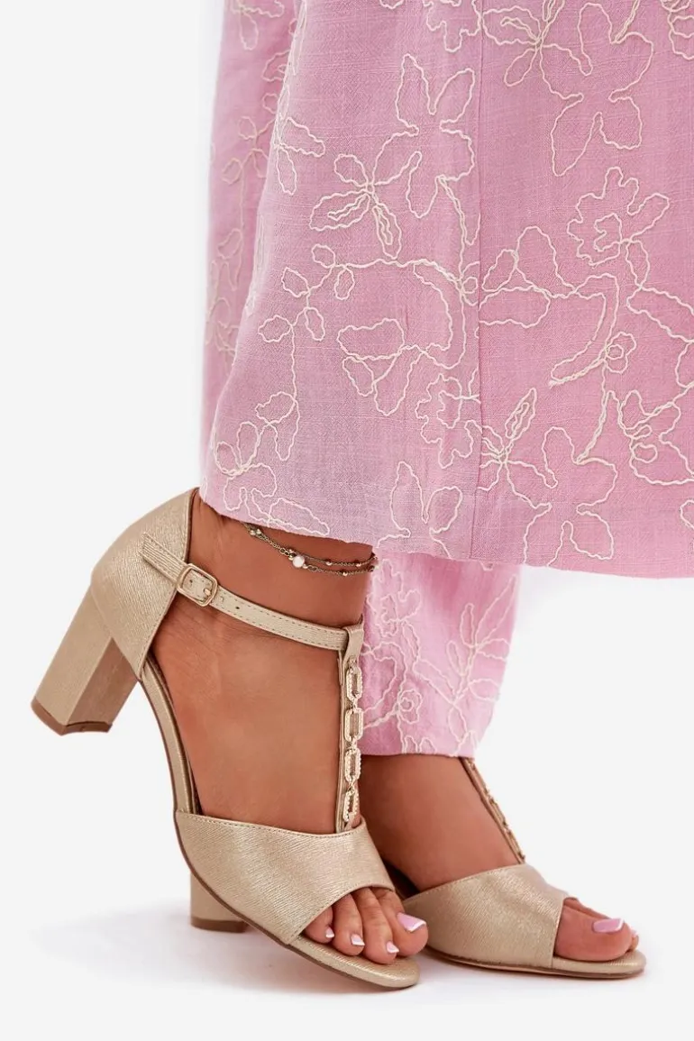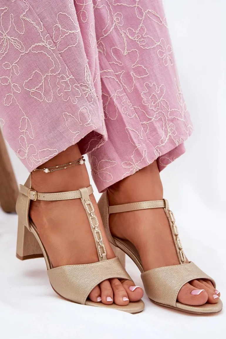 Eleganckie sandały damskie z eko skóry. Obcas w postaci słupka. Z przodu ozdobny paseczek. Dodatkowym atutem jest wkładka wykonana ze skóry naturalnej, która zapewni komfort podczas użytkowania. Regulowany pasek ze sprzączką umożliwia dopasowanie do indywidualnych potrzeb. Idealne na różne okazje! Przy wyborze rozmiaru prosimy sugerować się tabelą rozmiarów.