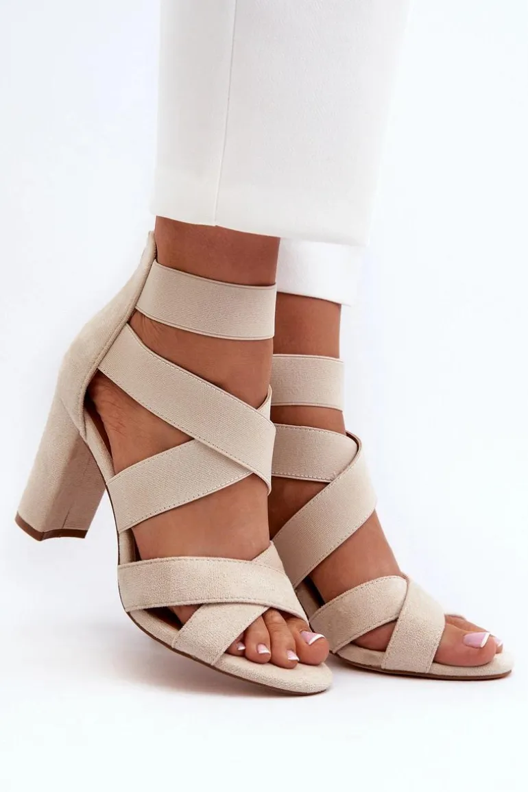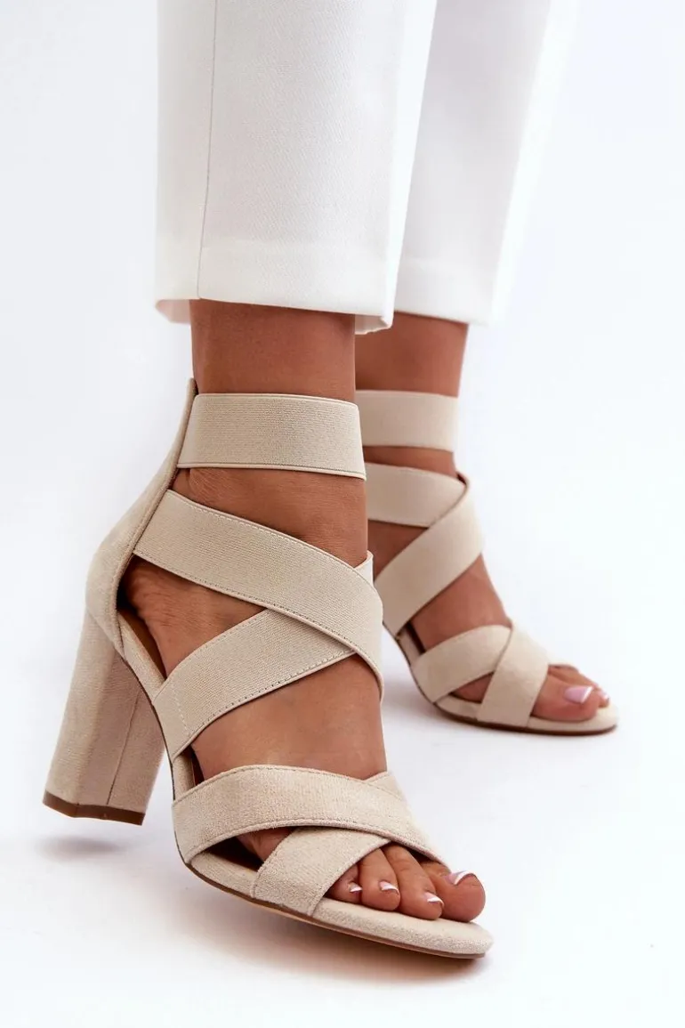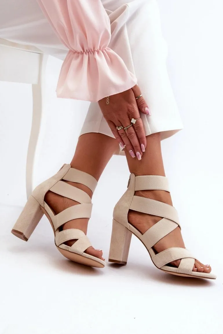 Sandały Damskie Na Słupku Z Paskami Beżowe Obissa