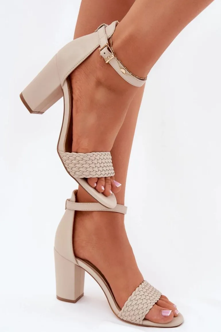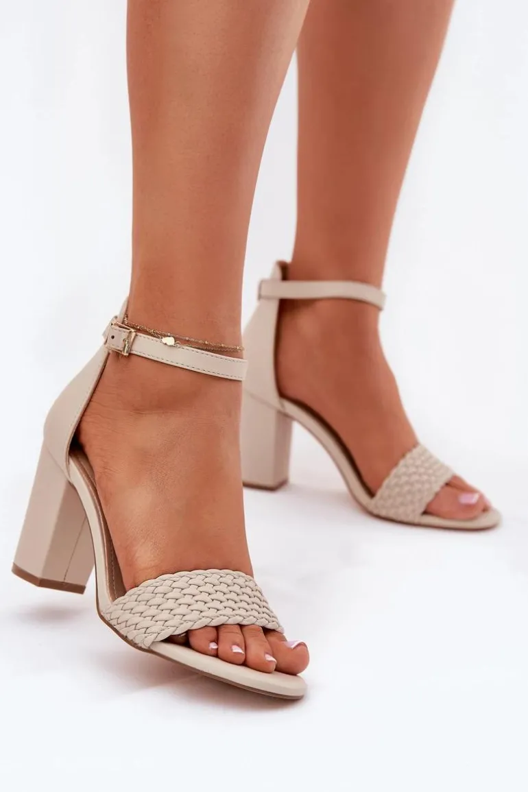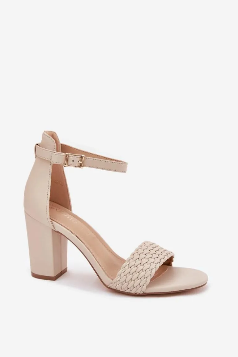 Sandały damskie wykonane z eko skóry to elegancka propozycja na ciepłe dni. Osadzone na obcasie w formie słupka, zapewniają stabilność i wygodę. Z przodu sandałów znajduje się pasek z plecionką, który dodaje im wyjątkowego charakteru. Zapinane na sprzączkę, umożliwiają idealne dopasowanie do stopy, a skórzana wkładka zapewnia komfort przez cały dzień. Idealne na różne okazje. Przy wyborze rozmiaru prosimy sugerować się tabelą rozmiarów.