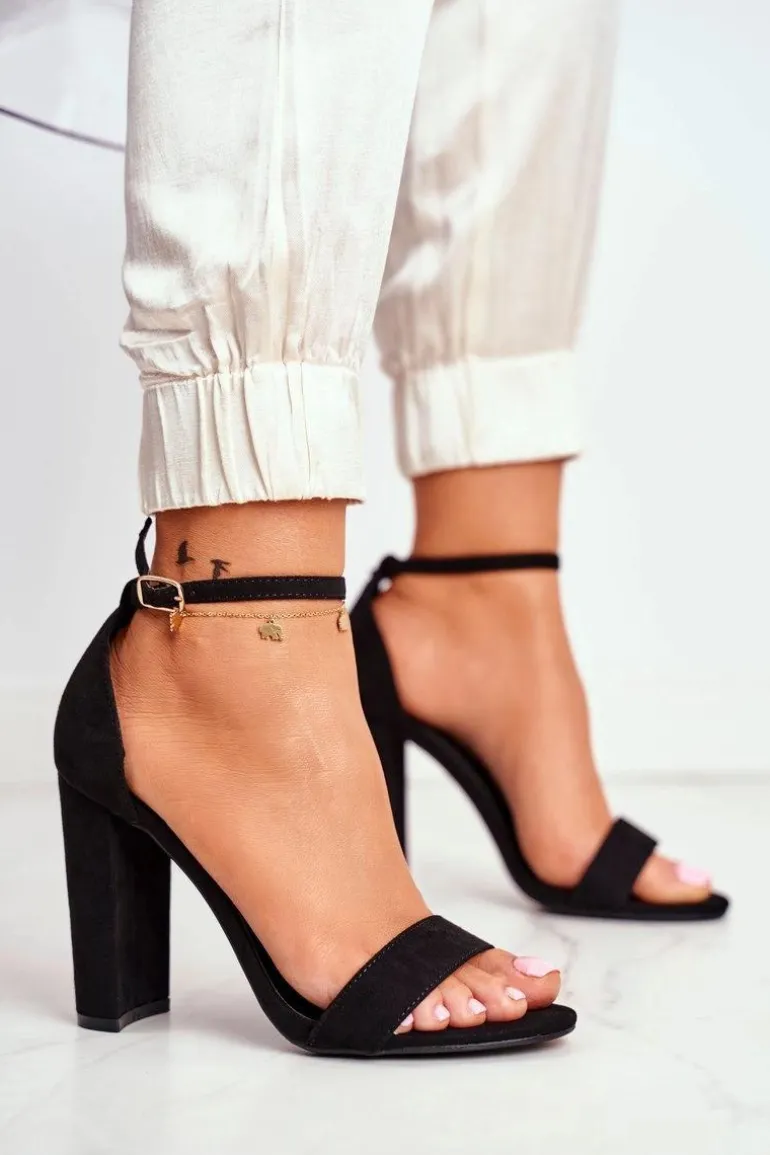 Sandały Damskie Na Słupku Zamszowe Czarne Anastasie