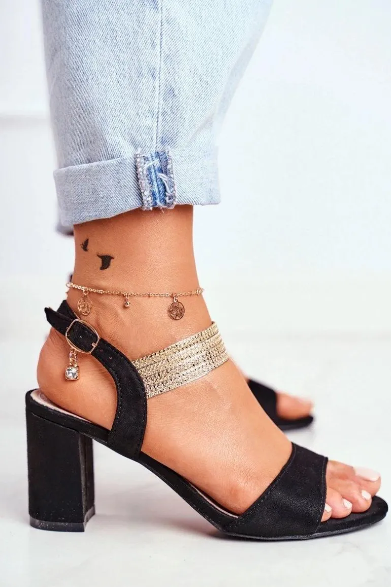 Sandały Damskie Na Słupku Zamszowe Czarne Enjoy