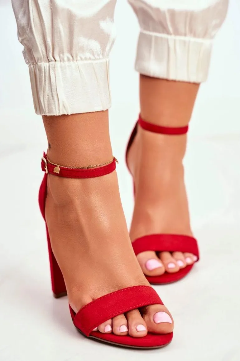 Sandały Damskie Na Słupku Zamszowe Czerwone Anastasie