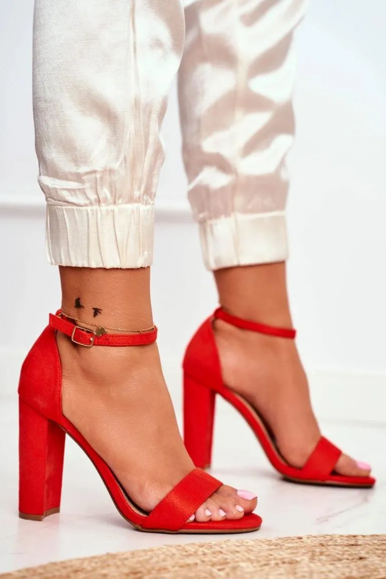 Sandały Damskie Na Słupku Zamszowe Pomarańczowe Anastasie