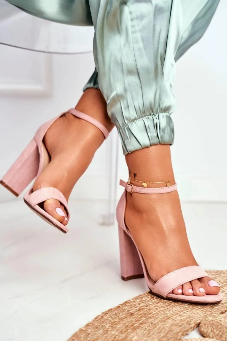 Sandały Damskie Na Słupku Zamszowe Różowe Anastasie