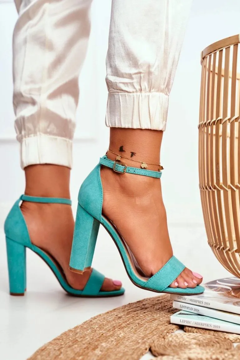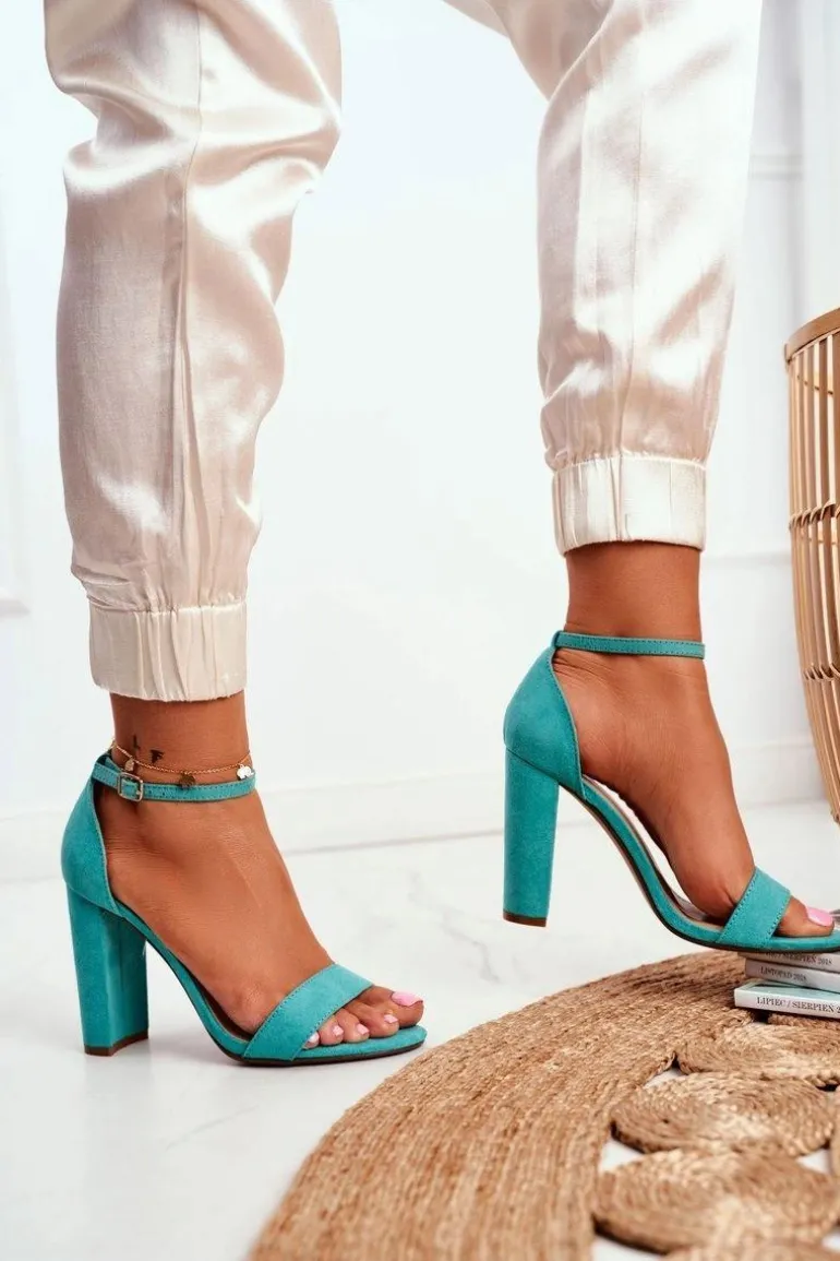 Sandały Damskie Na Słupku Zamszowe Zielone Anastasie