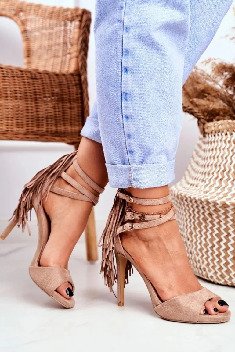 Sandały Damskie Na Szpilce Gladiatorki Beżowe Carnival
