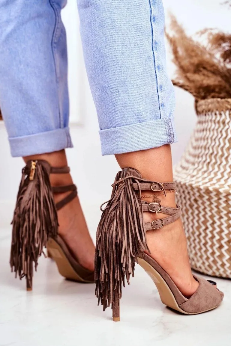 Sandały Damskie Na Szpilce Gladiatorki Taupe Carnival