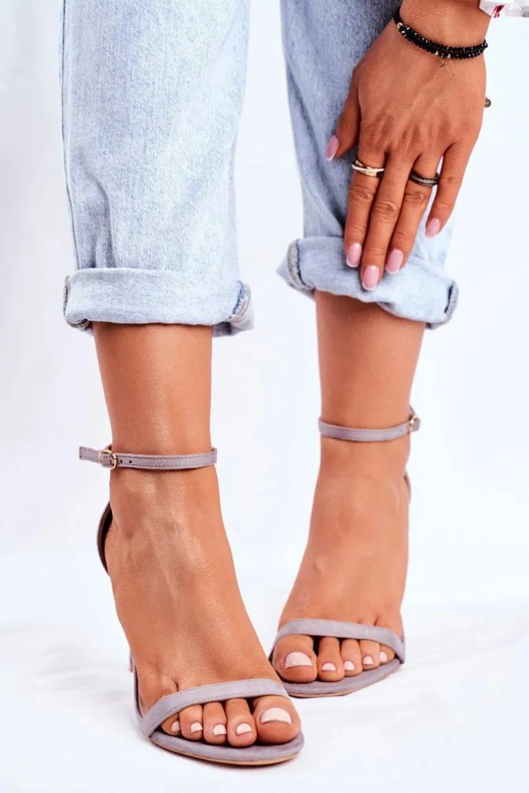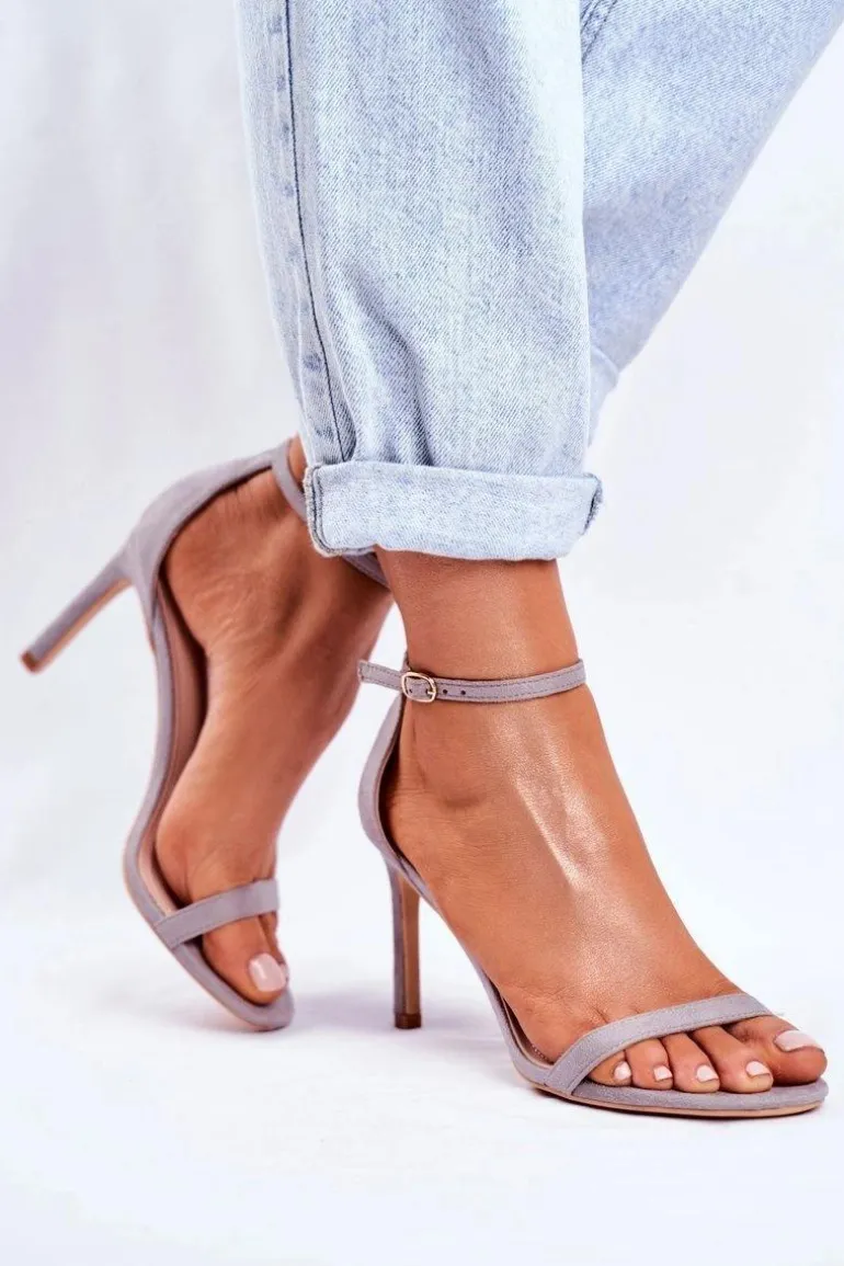 Sandały Damskie Na Szpilce Klasyczne Szare Basilian