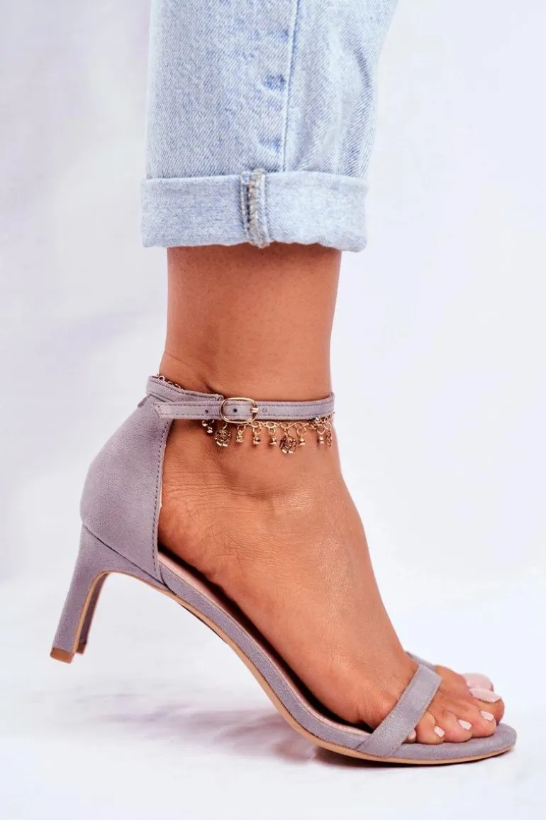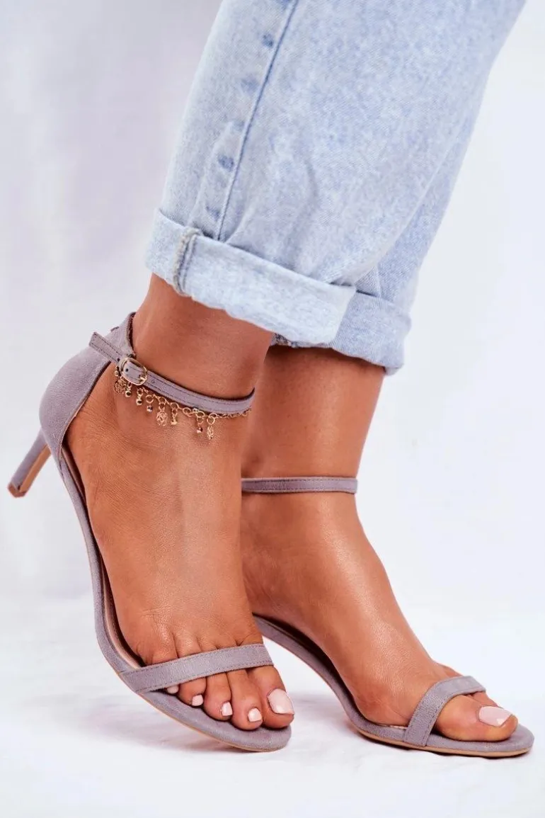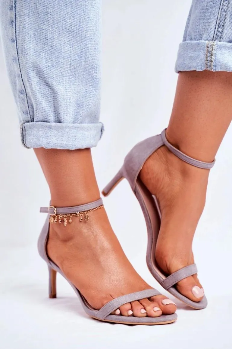 Sandały Damskie Na Szpilce Klasyczne Szare Mintore