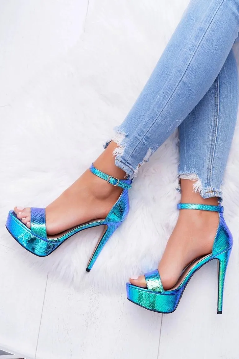 Sandały Damskie Na Szpilce Platformie Benzynowe Błękitne ShakeIt