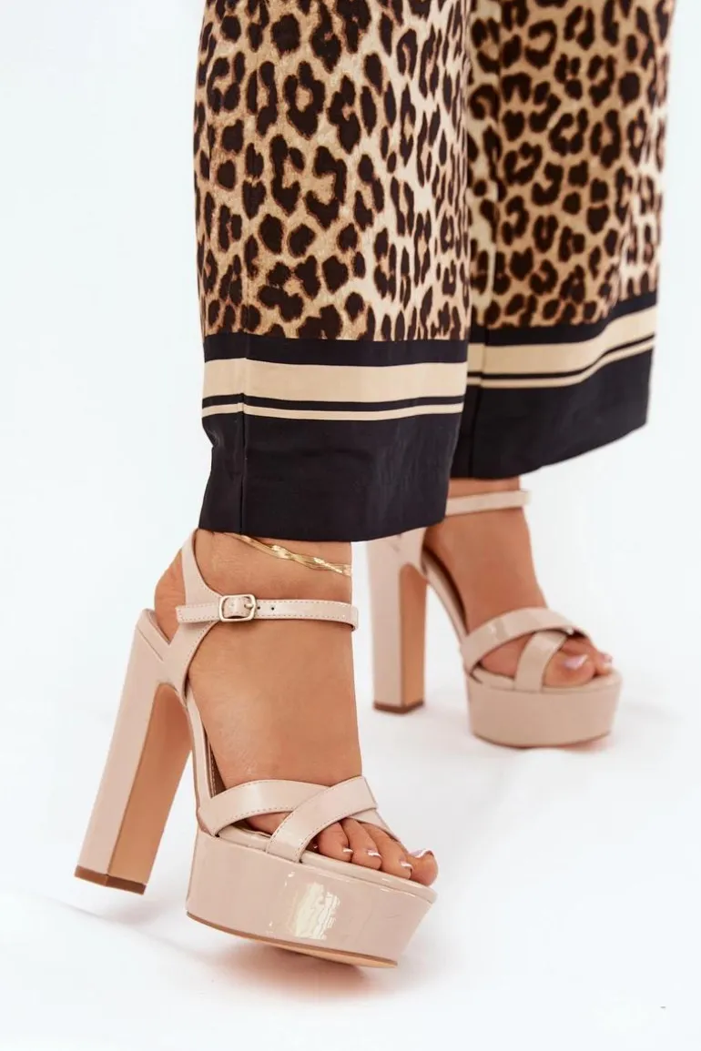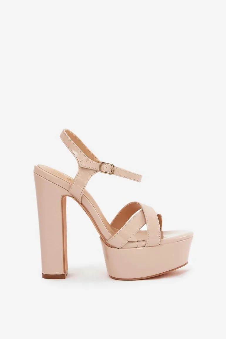Stylowe sandały damskie na wysokim obcasie słupku i platformie, które łączą elegancję z wygodą. Z przodu dwa przeplatające się paseczki. Zapinane wokół kostki na sprzączkę z regulowanym paskiem, co pozwala na idealne dopasowanie do stopy. Te sandały będą doskonałym wyborem na różne okazje oraz wieczorne wyjścia. Przy wyborze rozmiaru prosimy sugerować się tabelą rozmiarów.