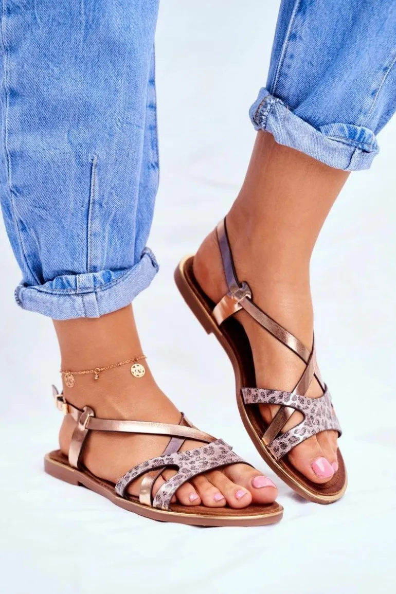Sandały Damskie Płaskie Champagne Barski Lomba