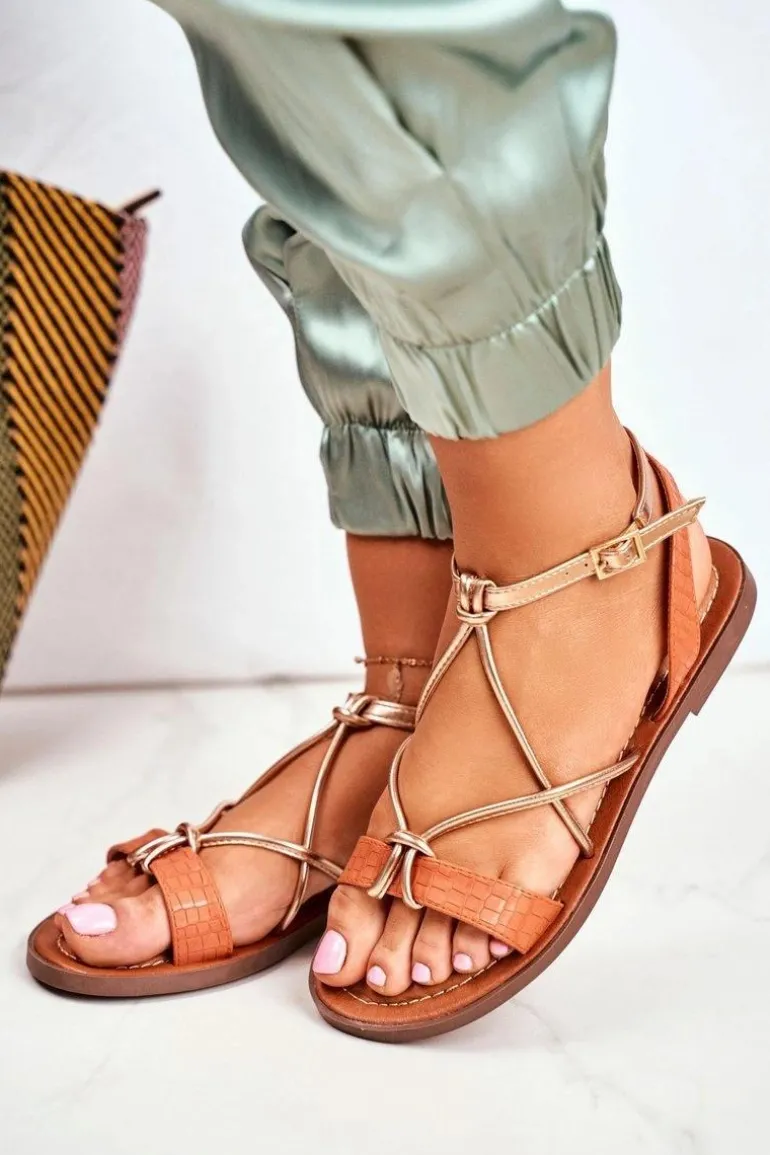 Sandały Damskie Płaskie Pomarańczowe Alison