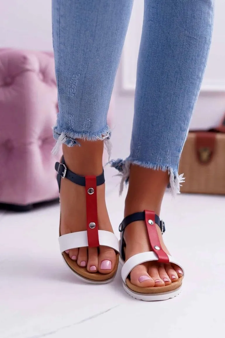 Sandały Damskie Płaskie Profilowane 8SD35-0306 Kolorowe Dubi