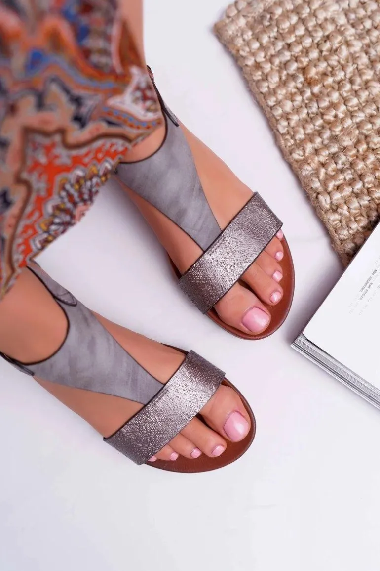 Sandały Damskie Płaskie Sergio Leone SK020 Szare Magra