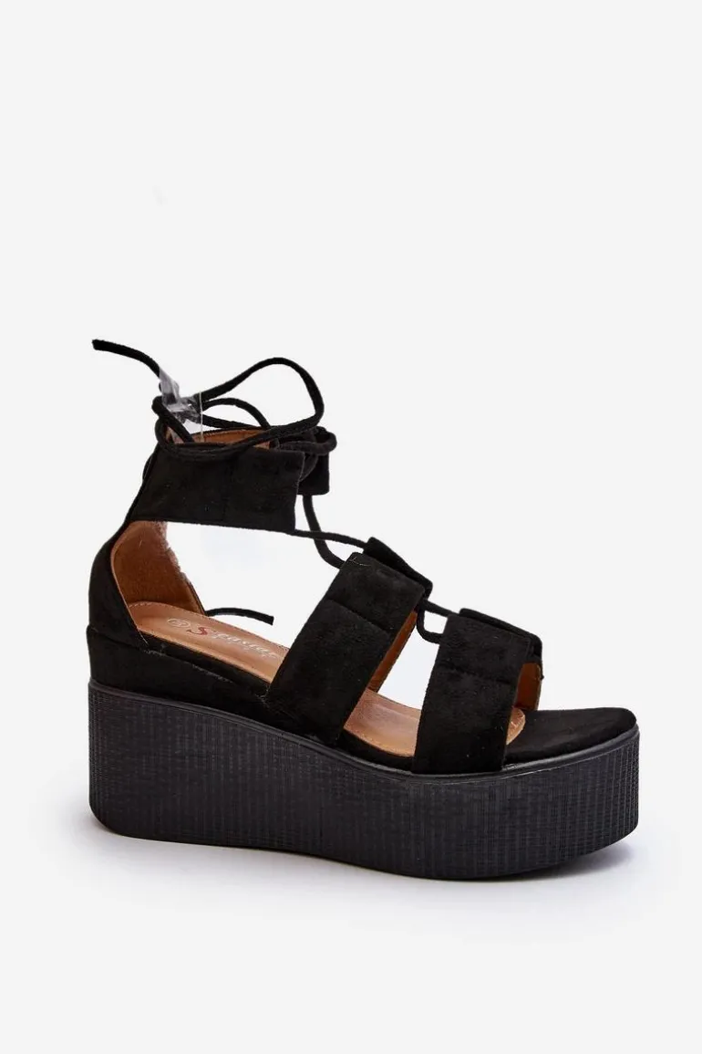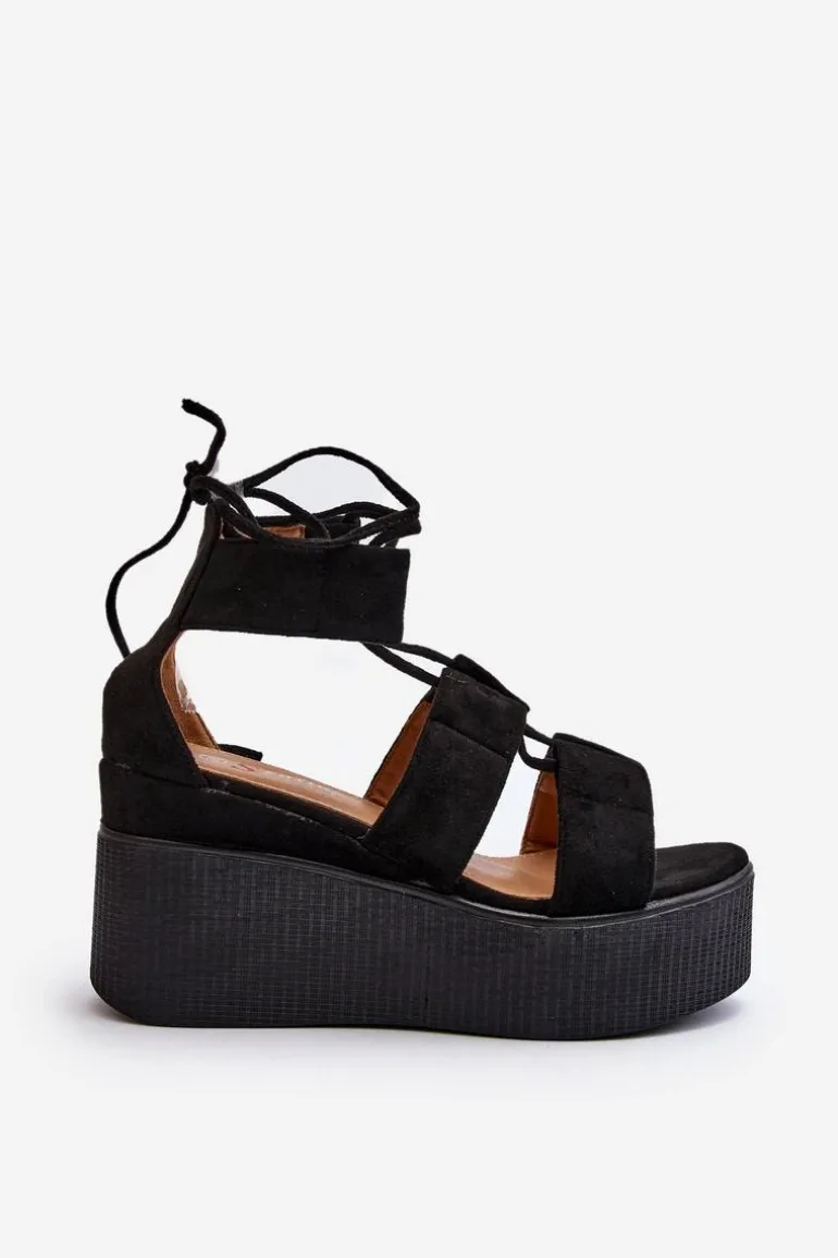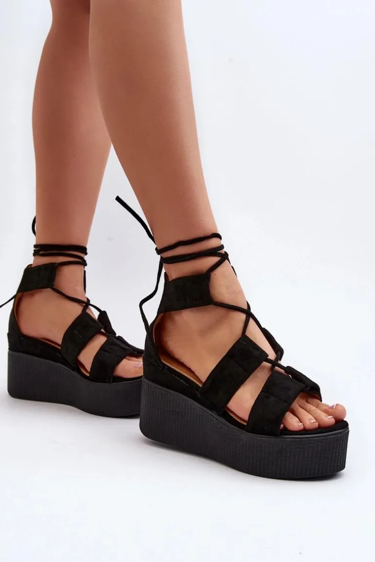 Sandały Damskie Wiązane Czarne Helavi