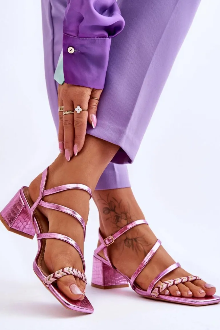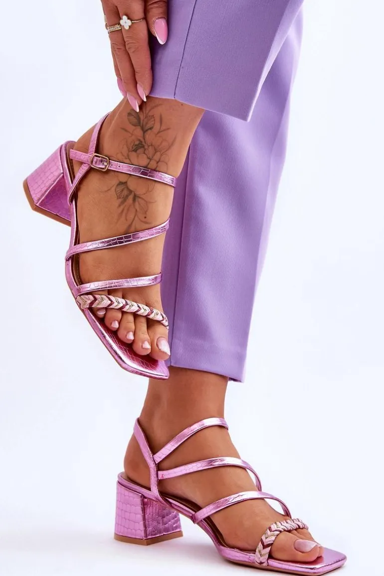 Eleganckie sandałki damskie wykonane z eko skóry. Osadzone na niskim obcasie w postaci słupka. Model ten posiada z przodu pleciony paseczek. Sandałki mają odkryty, kwadratowy, szerszy nosek. Idealne na upalne dni! Koniecznie sprawdź także pozostałe modele sandałek na naszej stronie! Przy wyborze rozmiaru prosimy sugerować się tabelą rozmiarów.