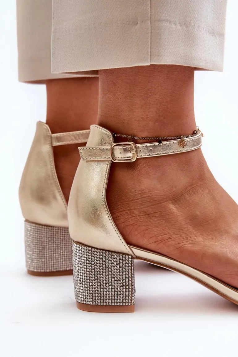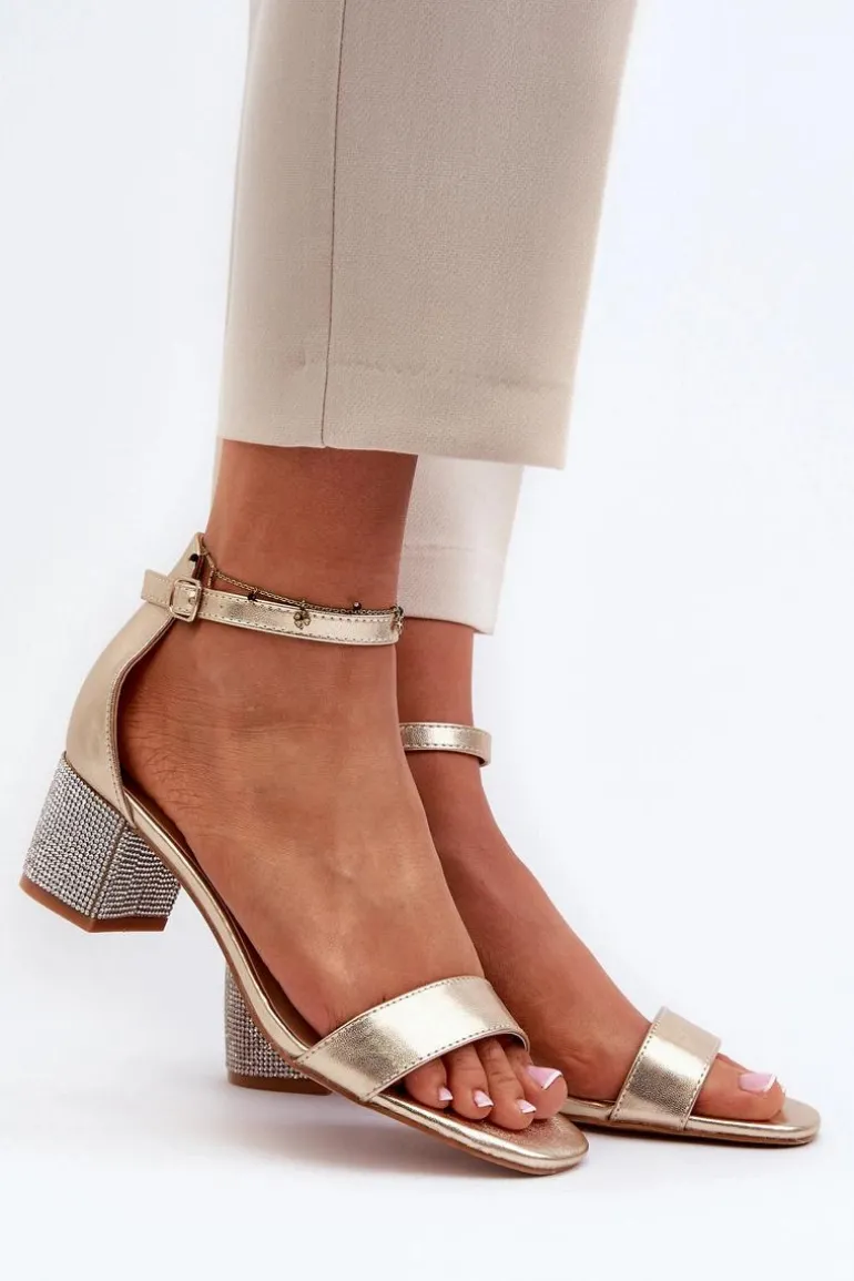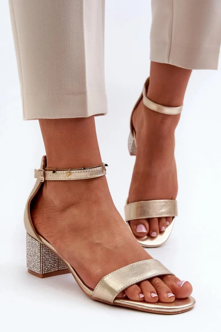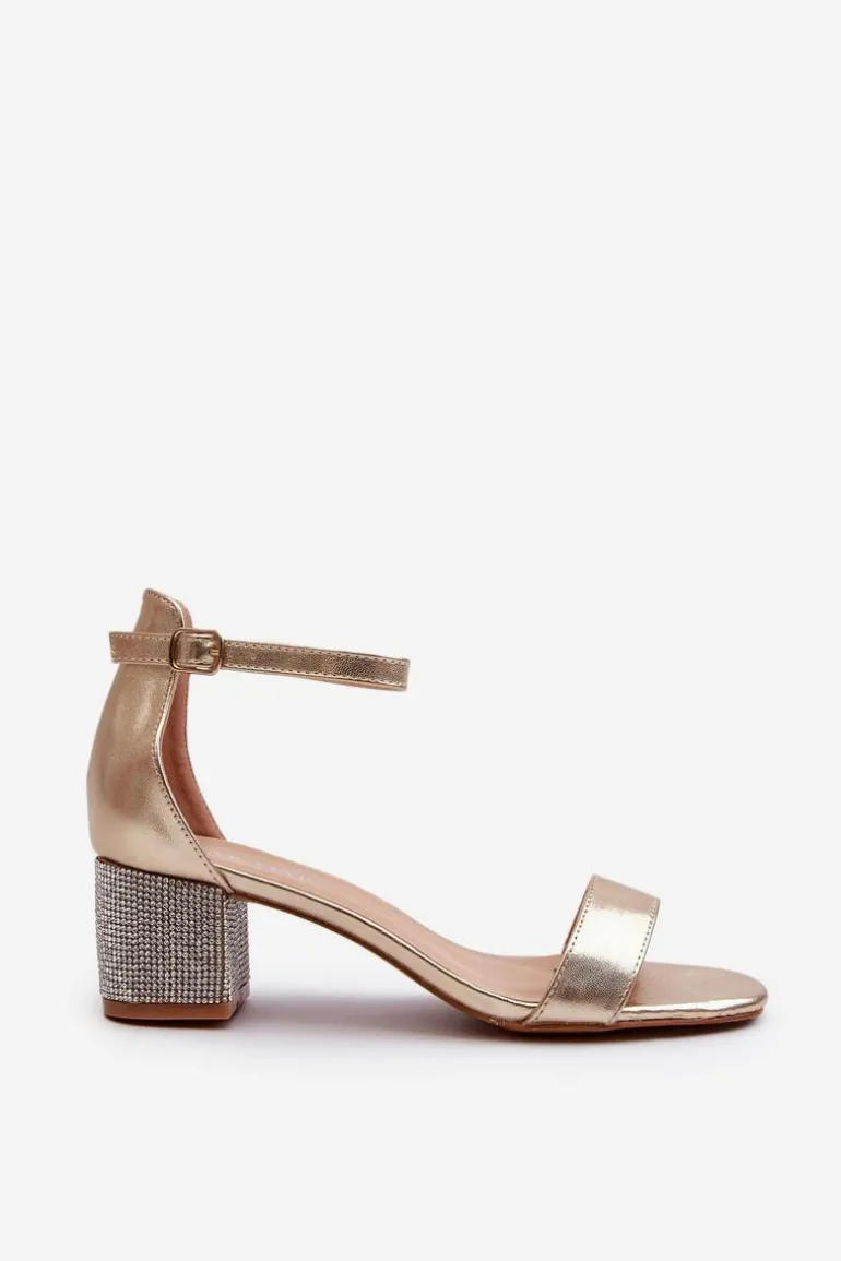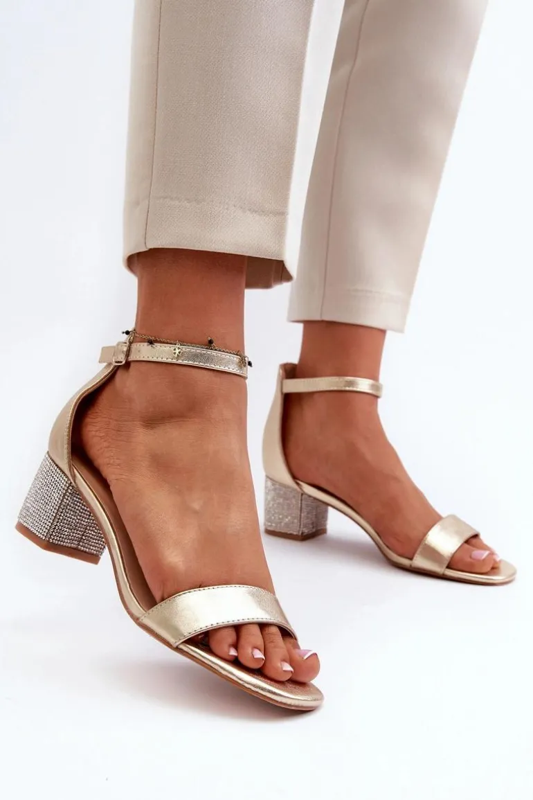 Sandały Damskie Z Eko Skóry Na Zdobionym Obcasie Złote Wiatalia