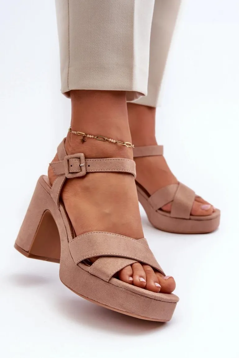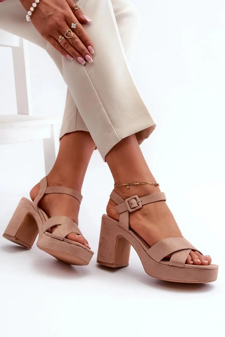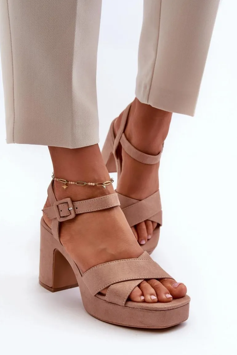 Damskie sandały wykonane z eko zamszu to połączenie elegancji i wygody. Osadzone na stabilnym słupku i platformie, zapewniają komfort noszenia przez cały dzień. Zapinane na regulowany pasek ze sprzączką, co pozwala na idealne dopasowanie do stopy. Te sandały są doskonałym wyborem do letnich stylizacji! Przy wyborze rozmiaru prosimy sugerować się tabelą rozmiarów.