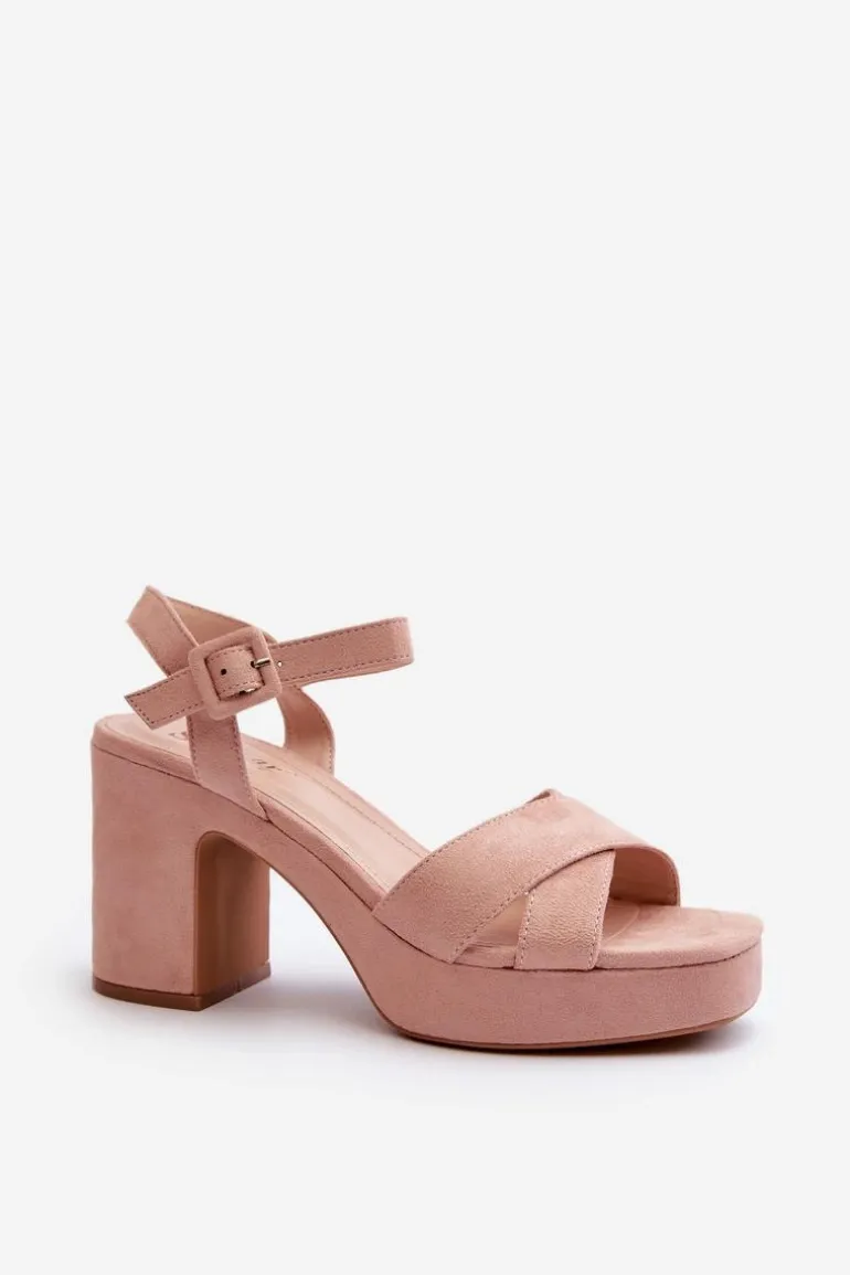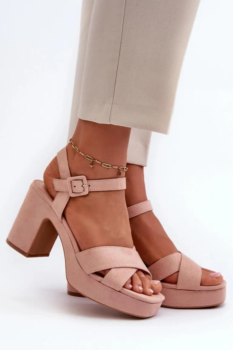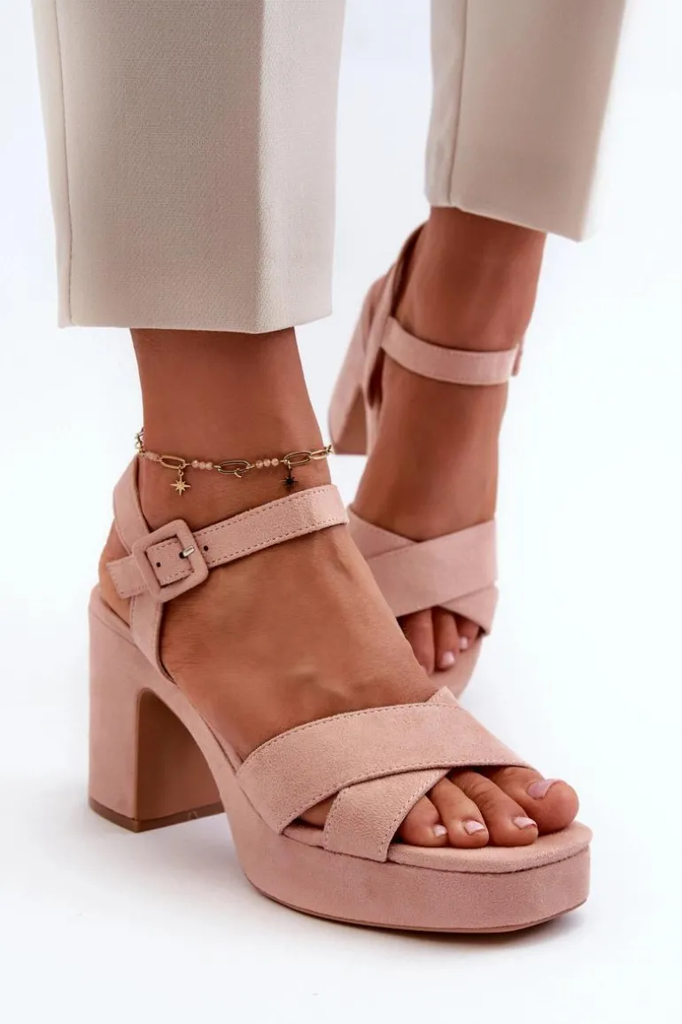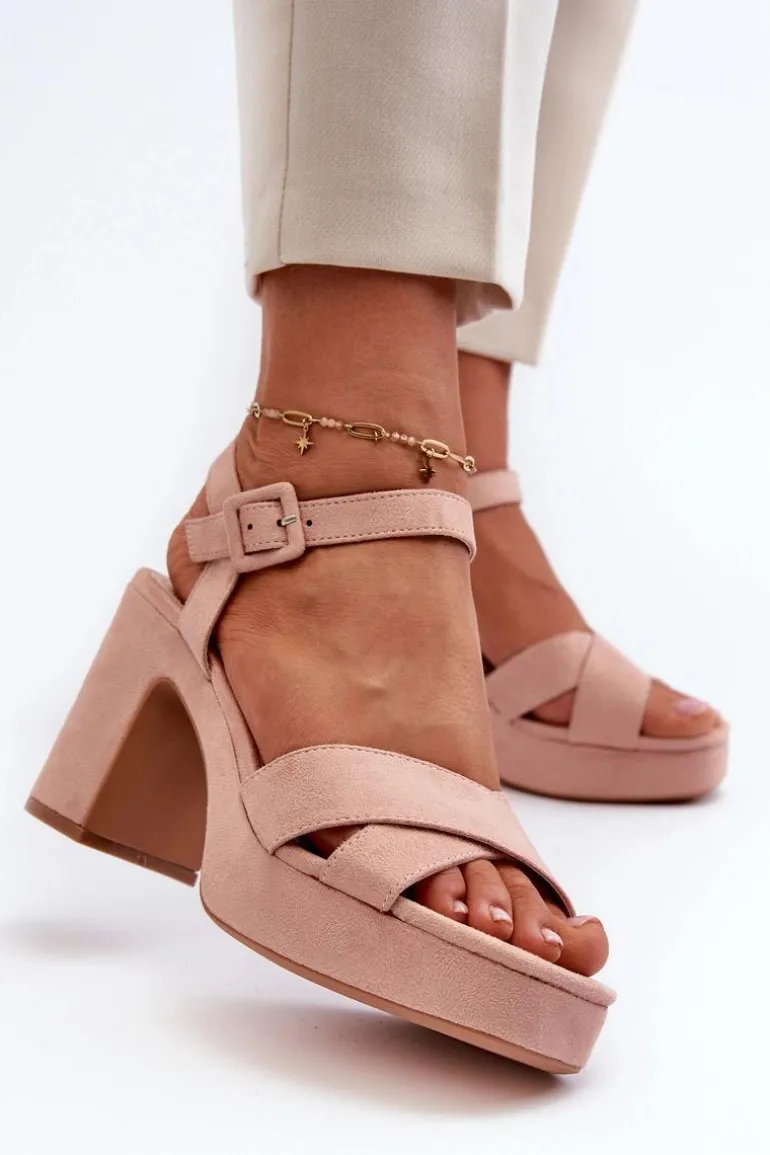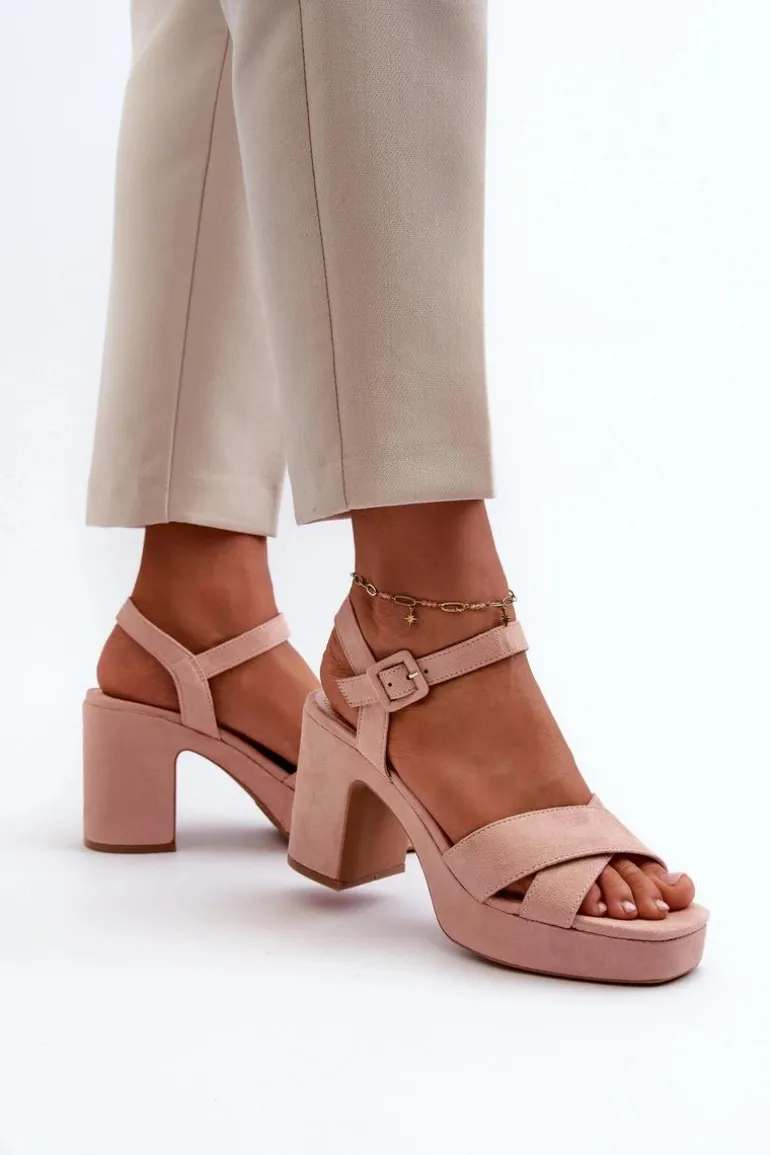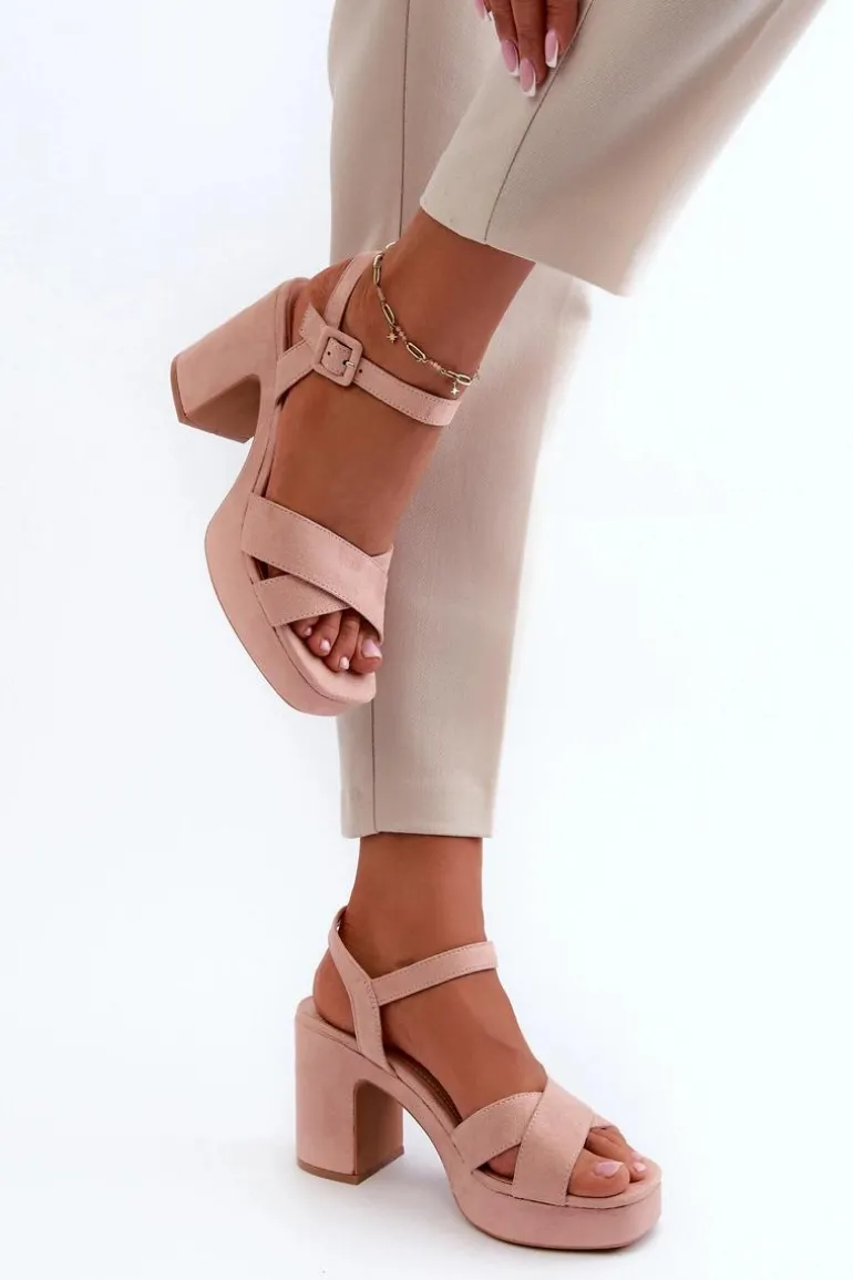 Sandały Damskie Z Eko Zamszu Na Słupku I Platformie Różowe Sakane
