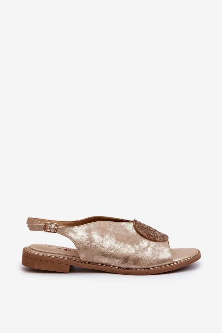 Sandały Damskie Z Ozdobą Na Płaskim Obcasie S.Barski KV24-057 Złote
