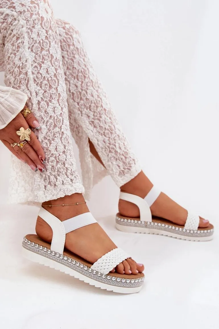 Sandały damskie z eko skóry, z plecionym paseczkiem z przodu. Osadzone na platformie ze zdobieniem. Model wsuwany z elastycznym paskiem zapewnia wygodę i łatwość zakładania. Doskonałe do letnich stylizacji, idealnie komponują się z sukienkami, spódnicami czy spodniami, oferując modny wygląd. Przy wyborze rozmiaru prosimy kierować się tabelą rozmiarów.