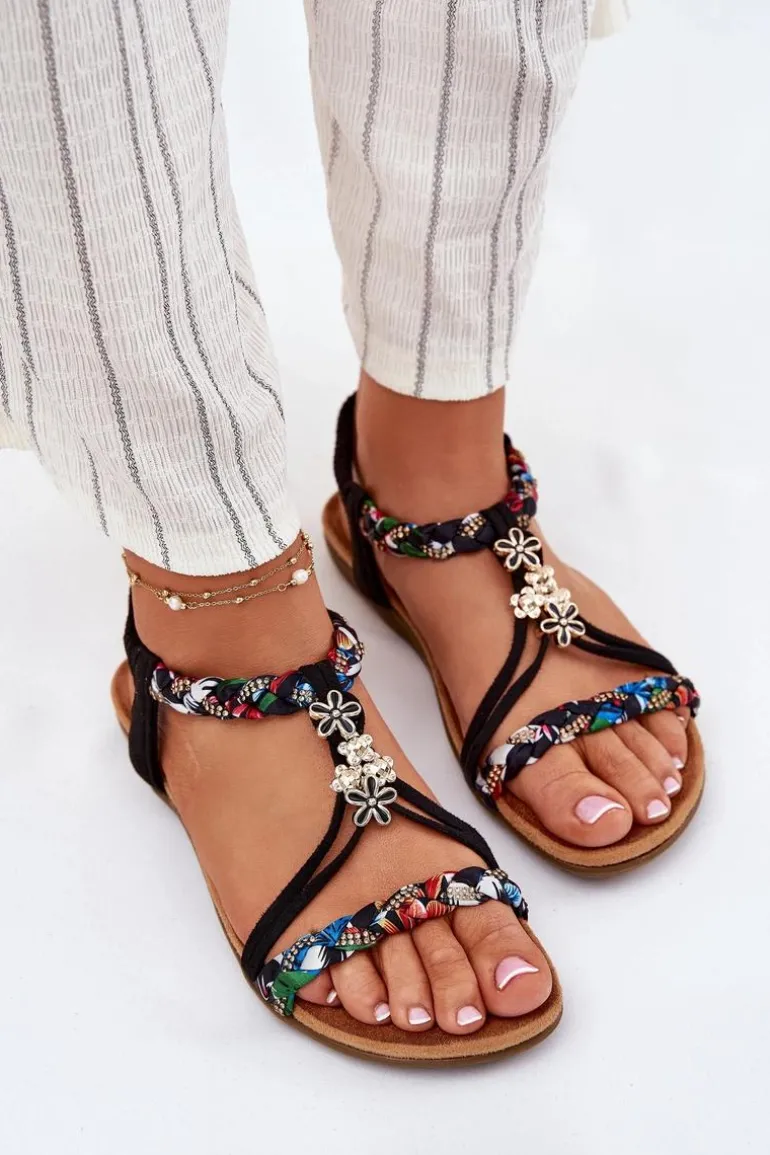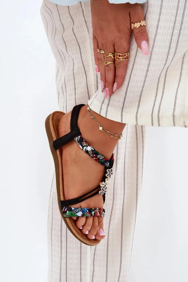 Damskie sandały, wykonane z połączenia eko zamszu i materiału tekstylnego, to stylowa opcja na letnie dni. Model wyróżnia się ozdobnymi przypinkami oraz plecionymi paseczkami, które dodają im unikalnego charakteru. Miękka wkładka zapewnia komfort noszenia przez cały dzień, a płaska podeszwa gwarantuje wygodę. Idealne do casualowych, jak i bardziej eleganckich letnich stylizacji. Przy wyborze rozmiaru prosimy sugerować się tabelą rozmiarów.