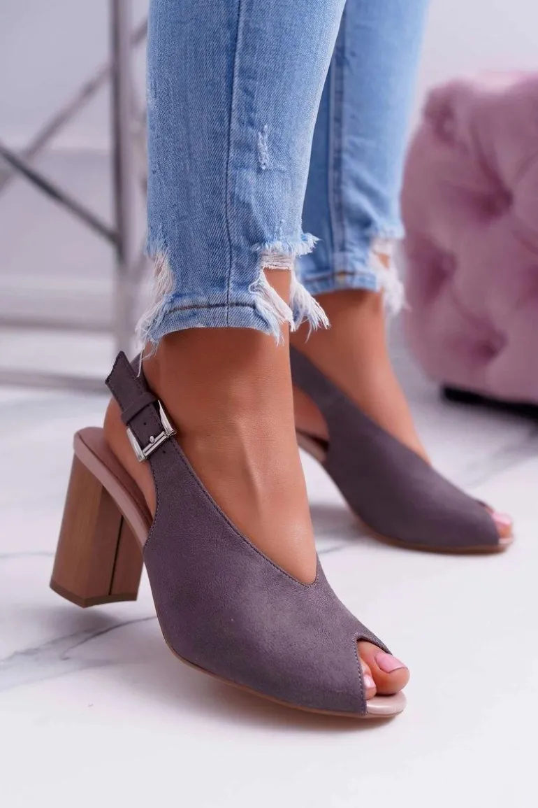 Sandały Damskie Zamszowe Ciemnoszare Celian