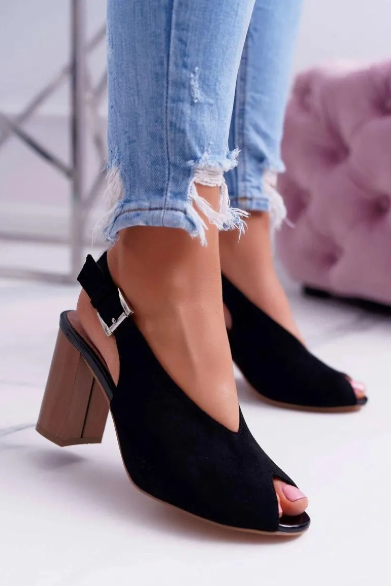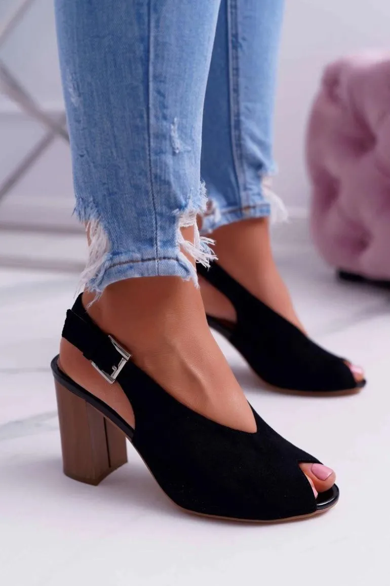 Sandały Damskie Zamszowe Czarne Celian