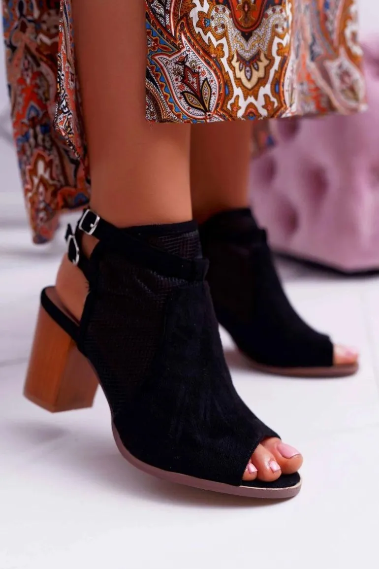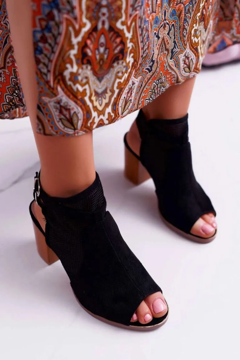 Sandały Damskie Zamszowe Czarne Thido