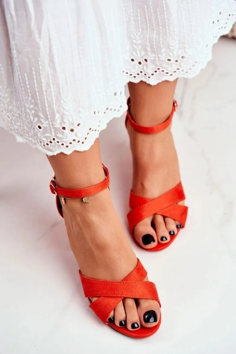 Sandały Damskie Zamszowe Pomarańczowe Lady Milion