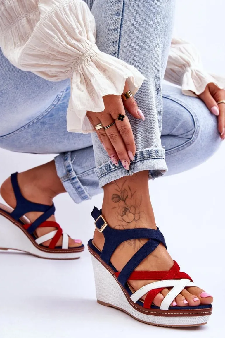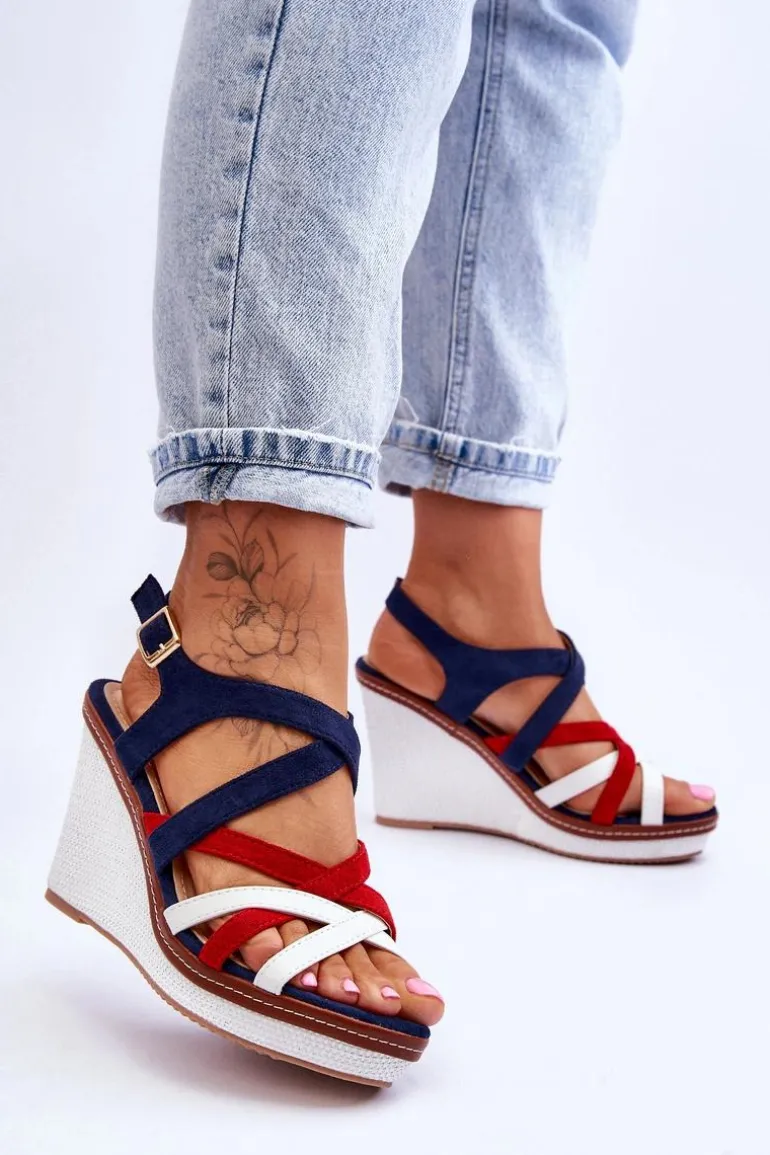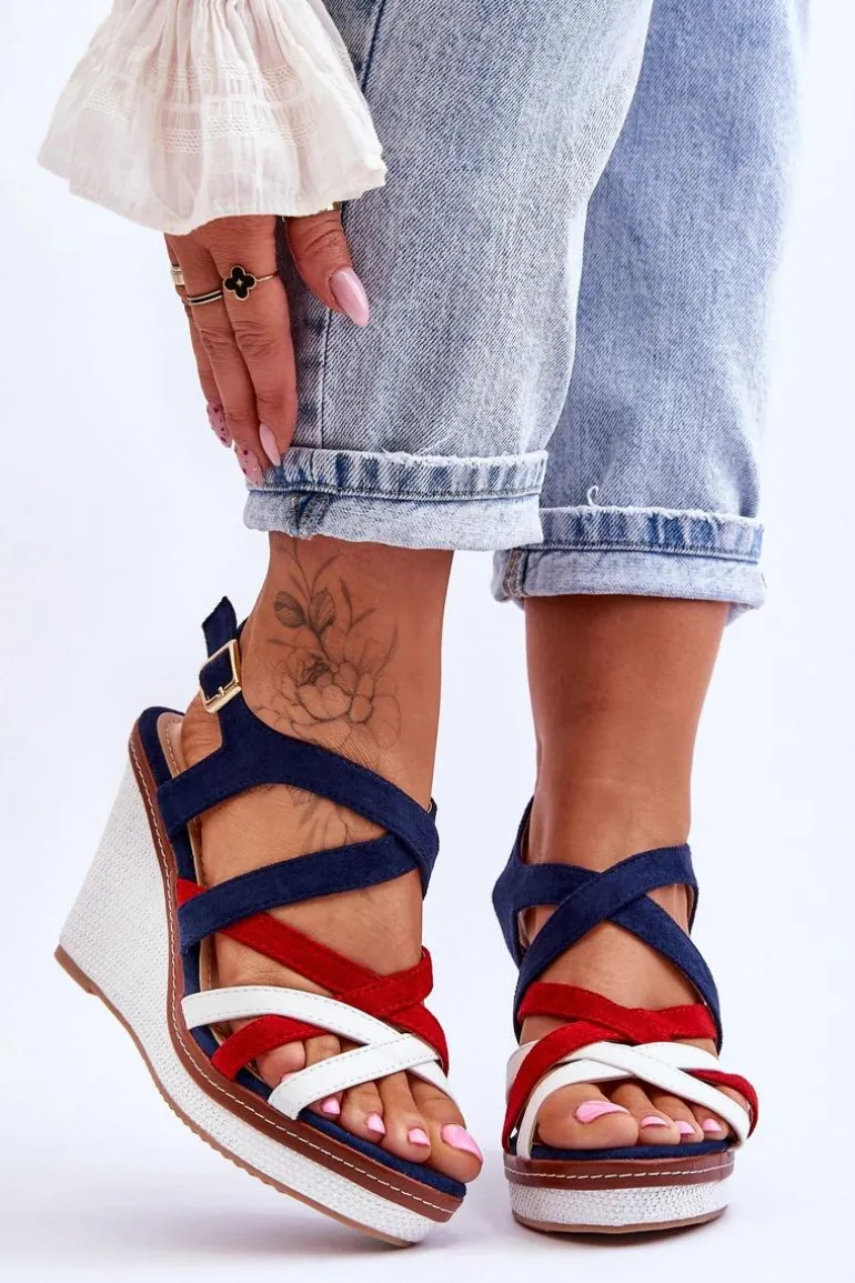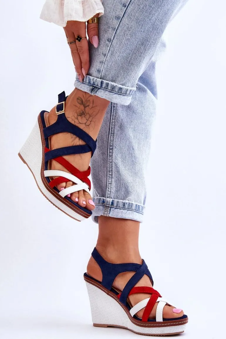 Sandały Na Koturnie Z Paseczkami Granatowe Ellen
