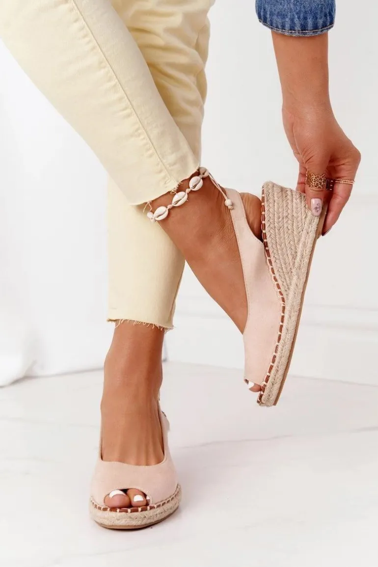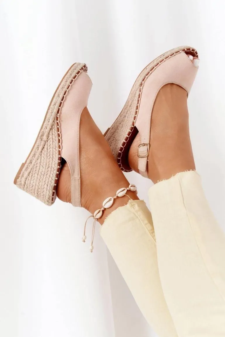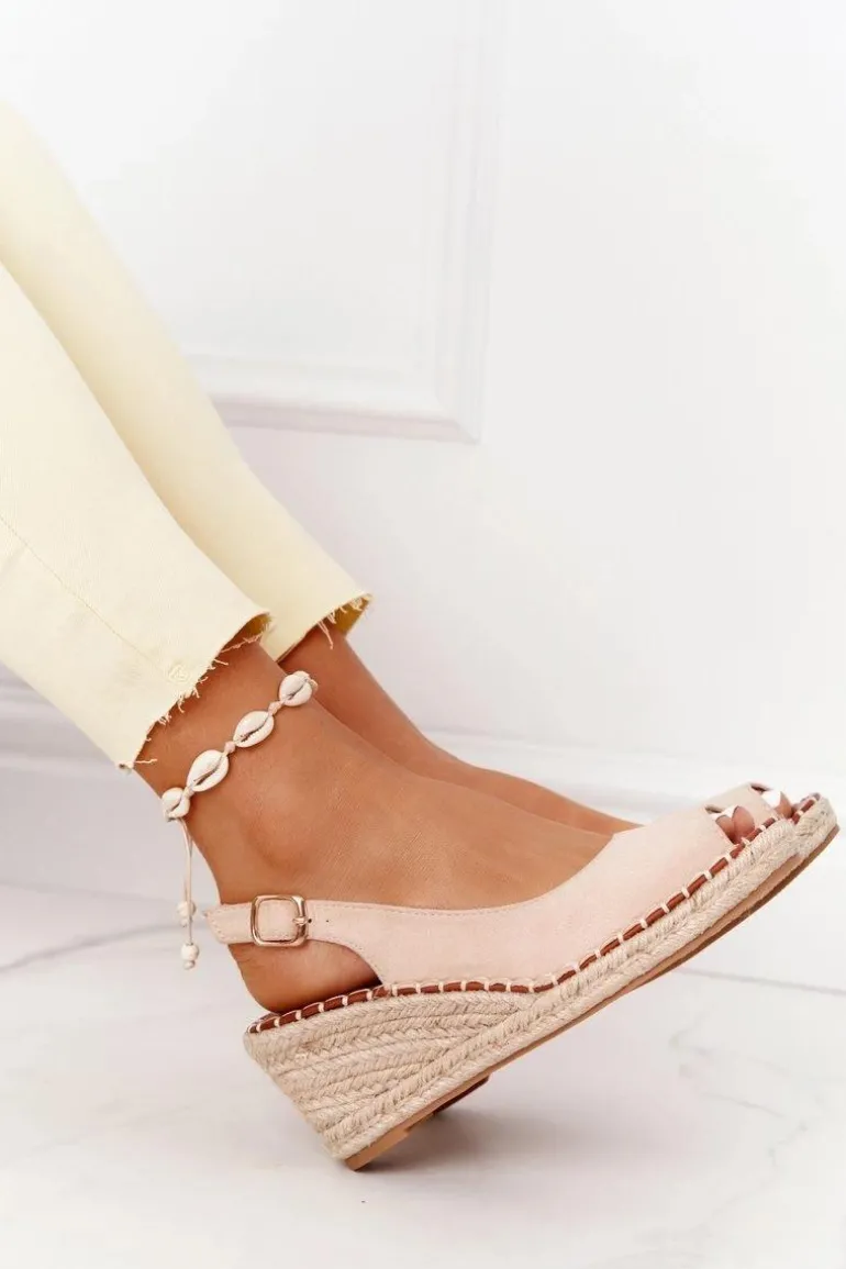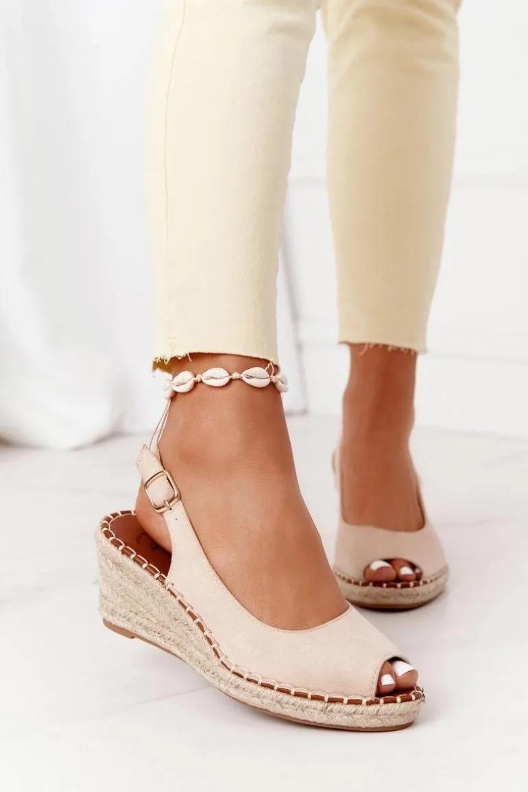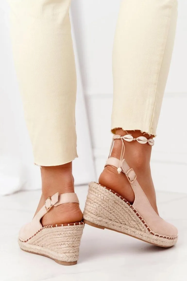Sandały Na Koturnie Z Plecionką Beżowe Las Palomas