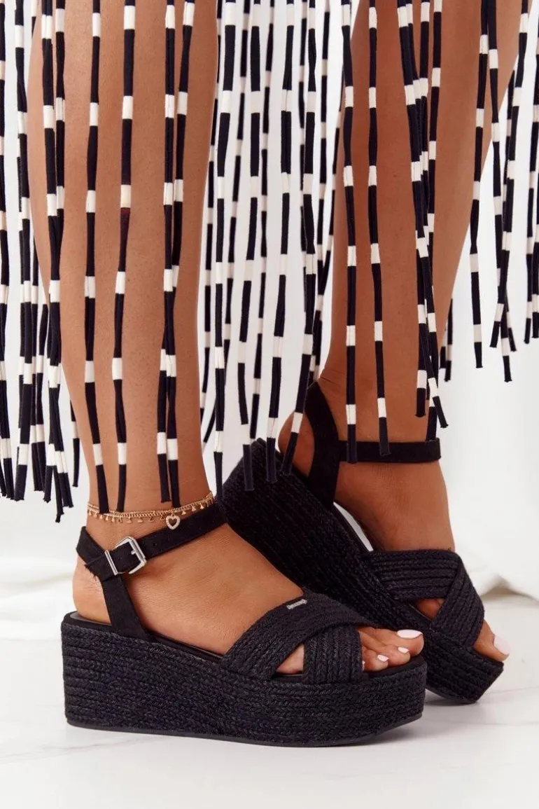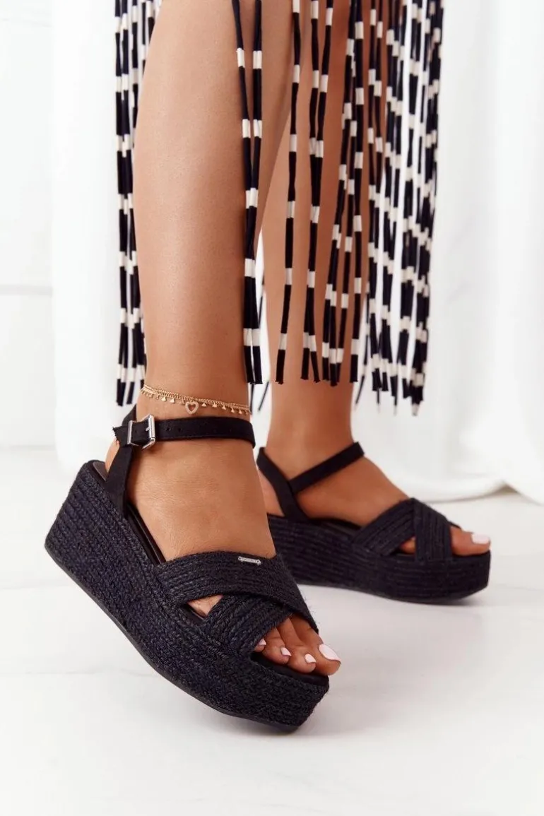 Sandały Na Koturnie Z Plecionką Big Star FF274762 Czarne