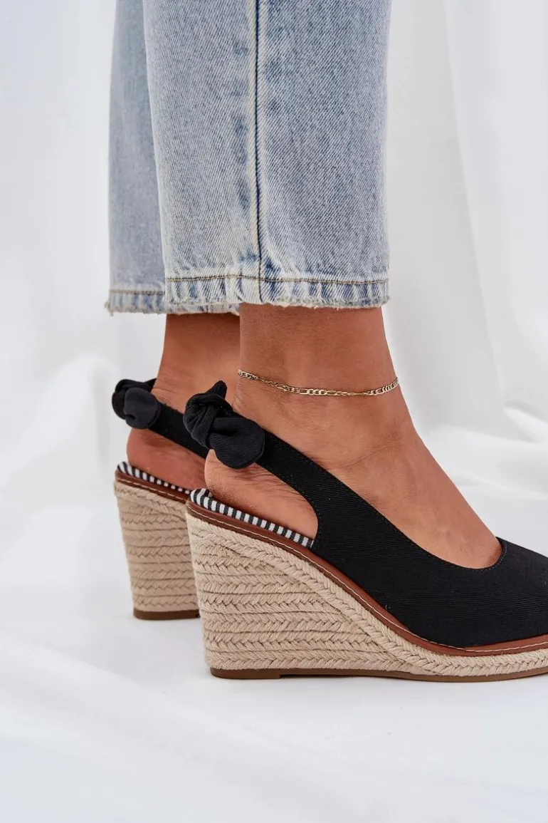 Sandały damskie z materiału tekstylnego to lekka i wygodna propozycja na ciepłe dni. Osadzone na koturnie z plecionką. Z tyłu znajduje się pętelka. Te sandały świetnie komponują się w letnich stylizacjach, łącząc komfort z modnym, naturalnym wyglądem. Idealne na wakacyjne spacery czy codzienne wyjścia. Przy wyborze rozmiaru prosimy sugerować się tabelą rozmiarów.