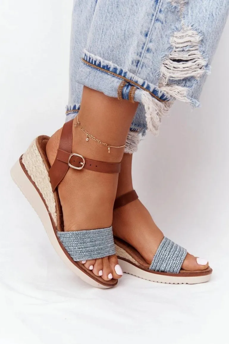 Sandały Na Koturnie Z Plecionką Niebieskie Tenerife