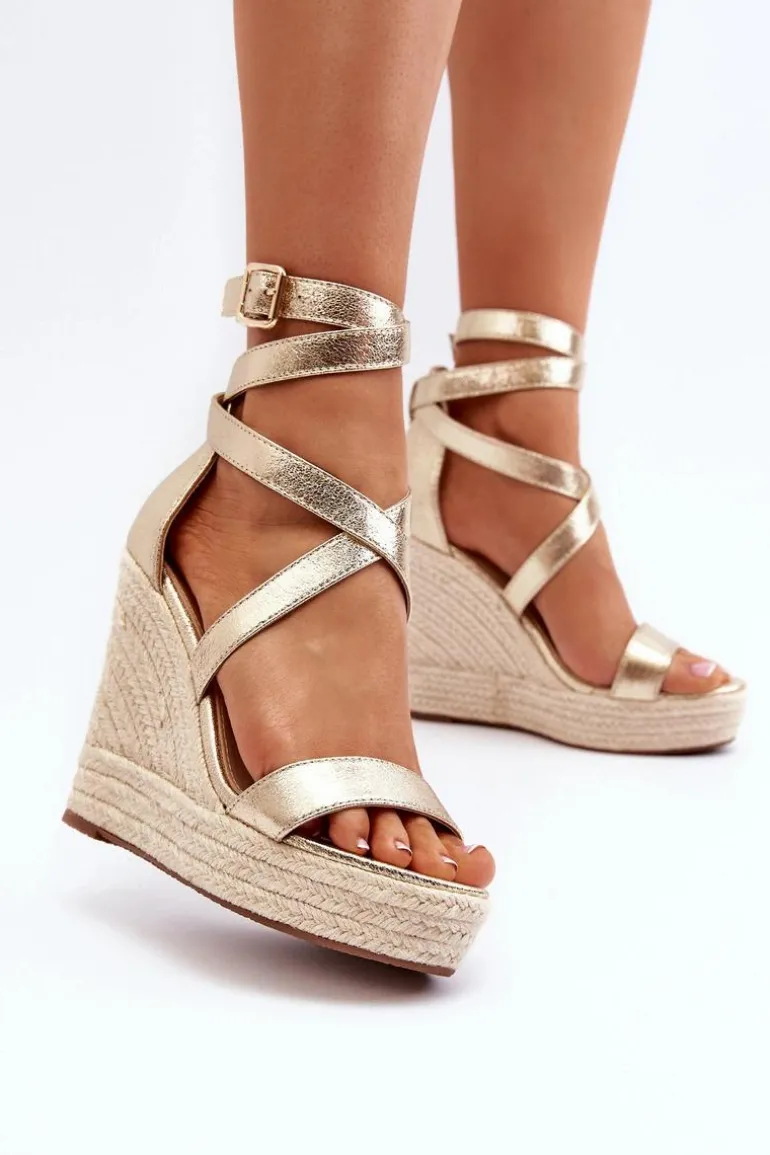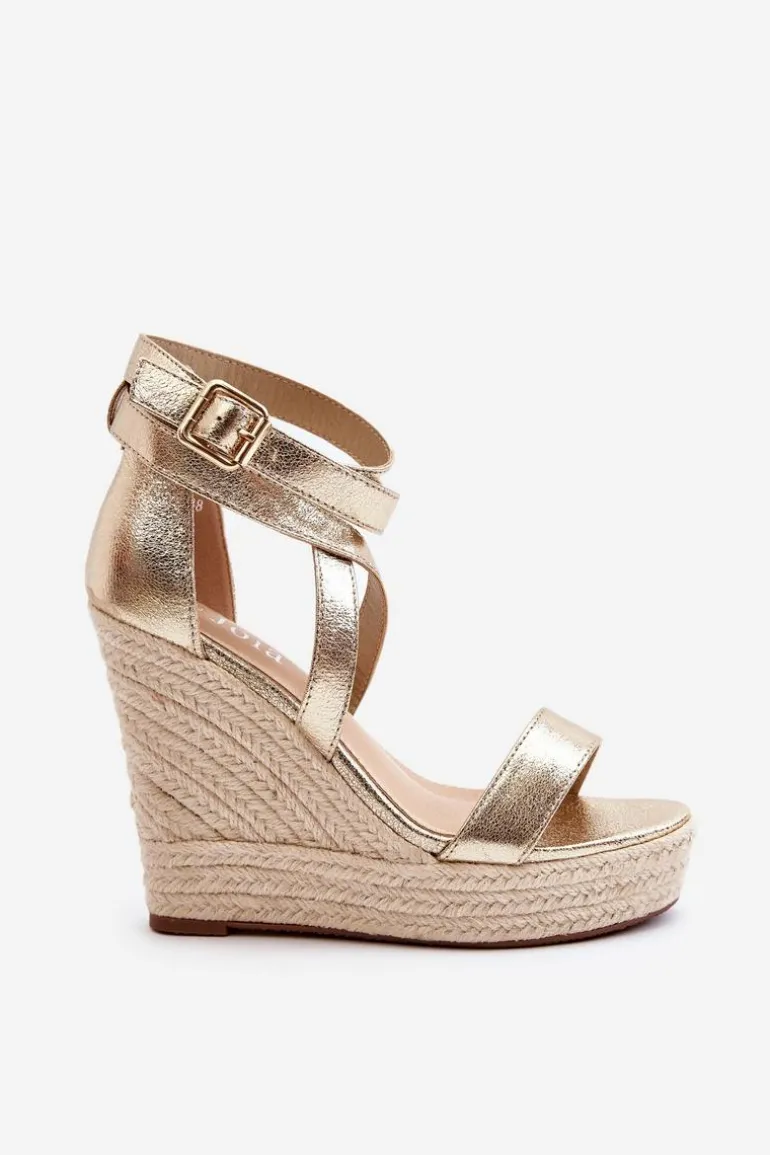 Sandały damskie wykonane z eko skóry. Osadzone na koturnie i platforma z jutową plecionką. Zapinane na regulowany pasek ze sprzączką. Model ten to doskonałe rozwiązanie dla osób poszukujących obuwia, które łączy wygodę i elegancję, szczególnie podczas długich letnich spacerów! Przy wyborze rozmiaru prosimy sugerować się tabelą rozmiarów.