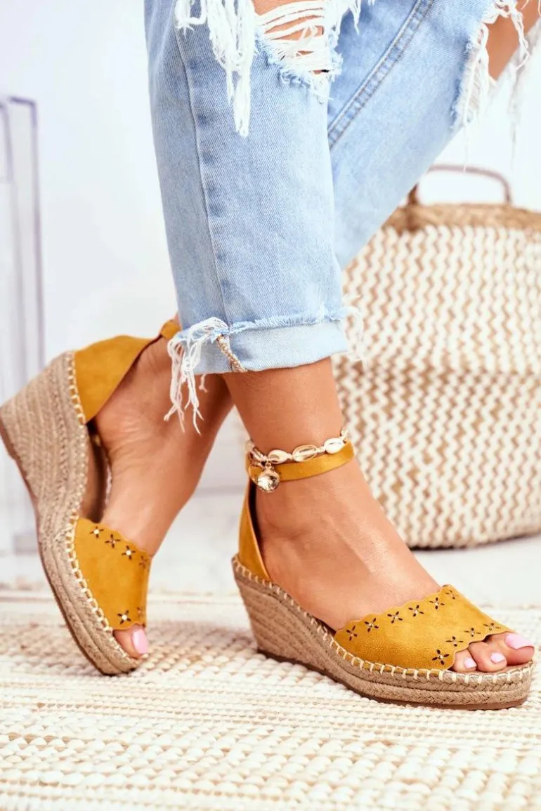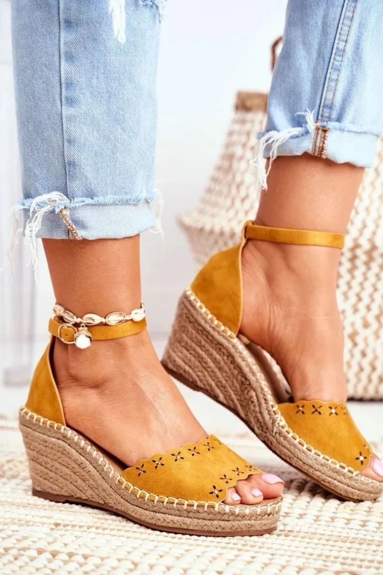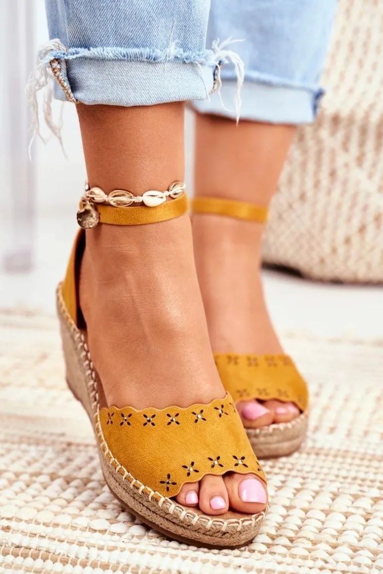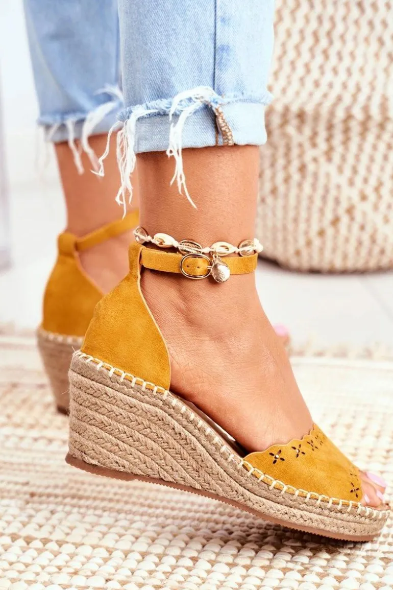 Sandały Na Plecionej Koturnie Żółte Sagittarius