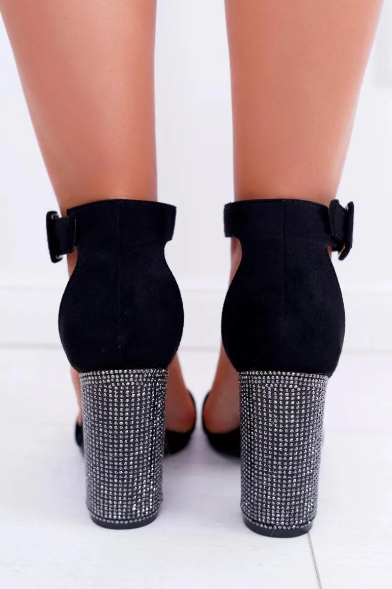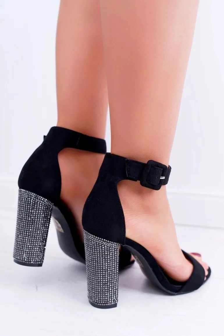 Sandały Na Słupku Z Cyrkoniami Lu Boo Czarne