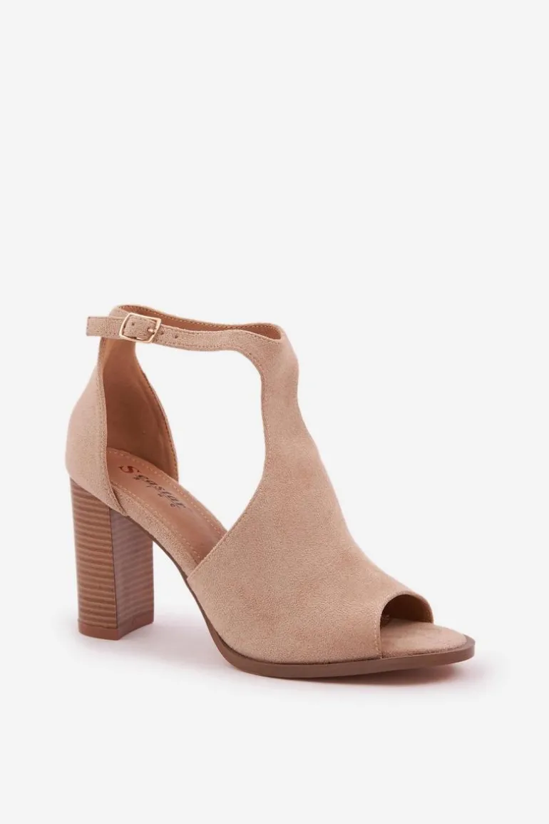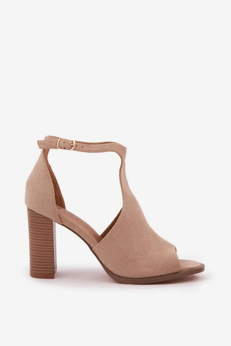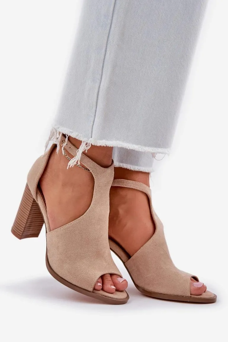 Sandały Na Słupku Z Eko Zamszu Beżowe Lanadriena
