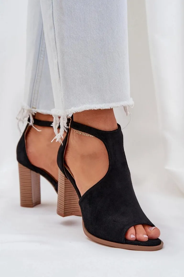 Damskie sandały z eko zamszu łączą w sobie elegancję i komfort. Osadzone na stabilnym słupku, oferują wygodę przez cały dzień. Model ten posiada regulowany pasek ze sprzączką, co umożliwia idealne dopasowanie do stopy. Te sandały to idealny wybór na letnie stylizacje! Przy wyborze rozmiaru prosimy sugerować się tabelą rozmiarów.