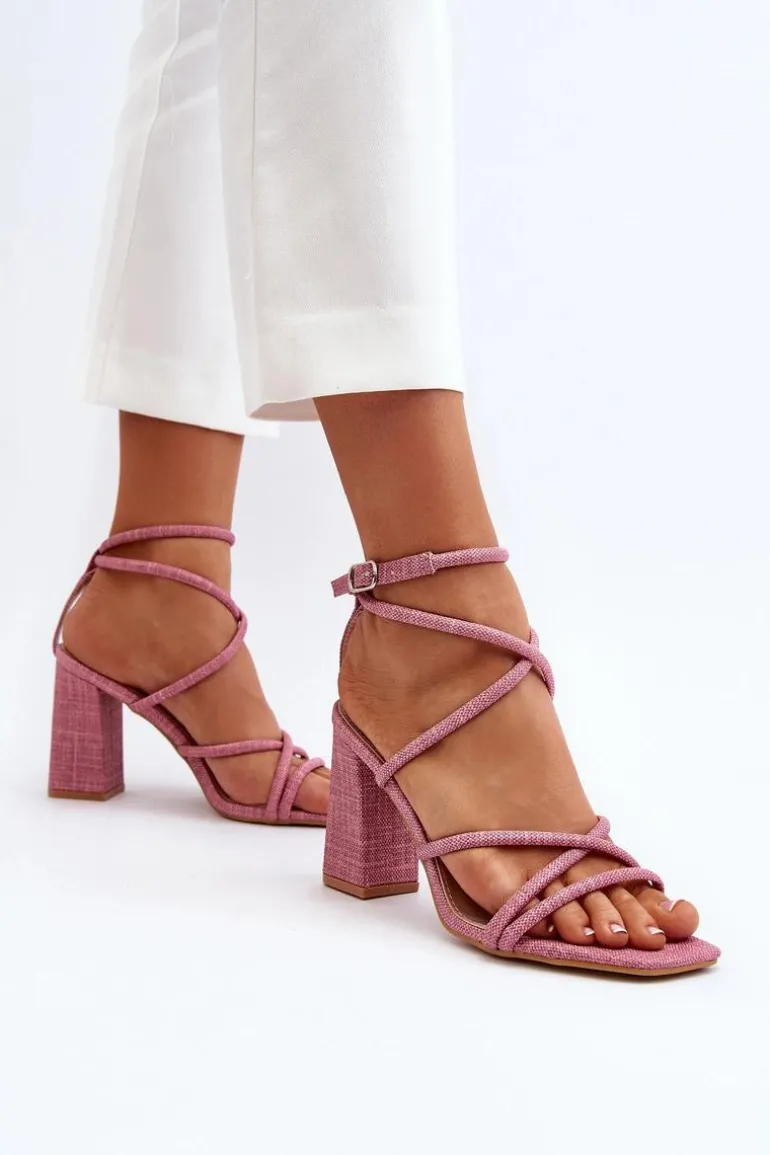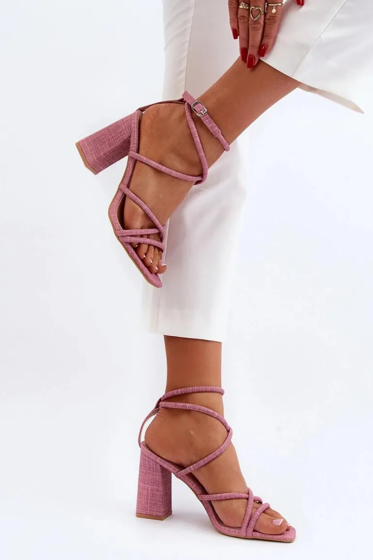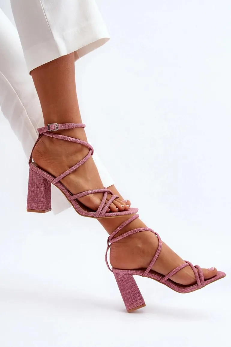 Sandały Na Słupku Z Paskami Różowe Herfiana