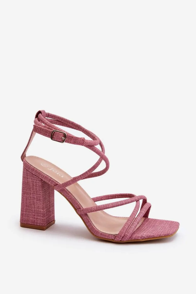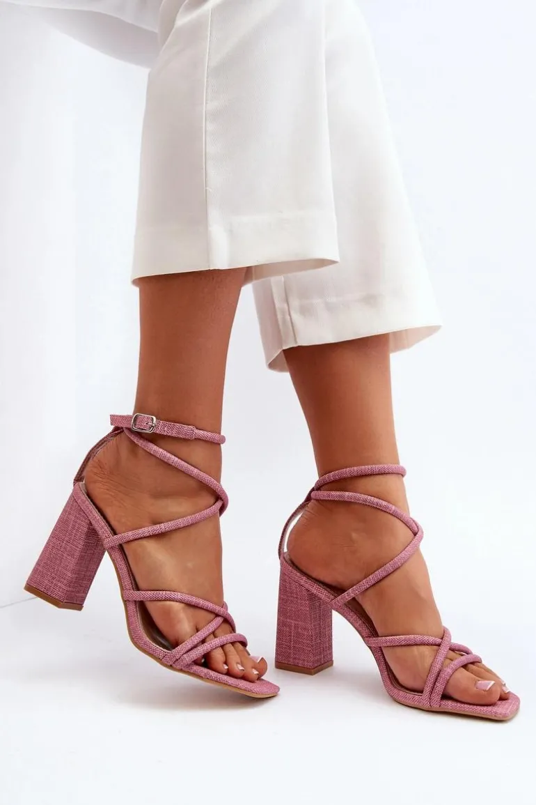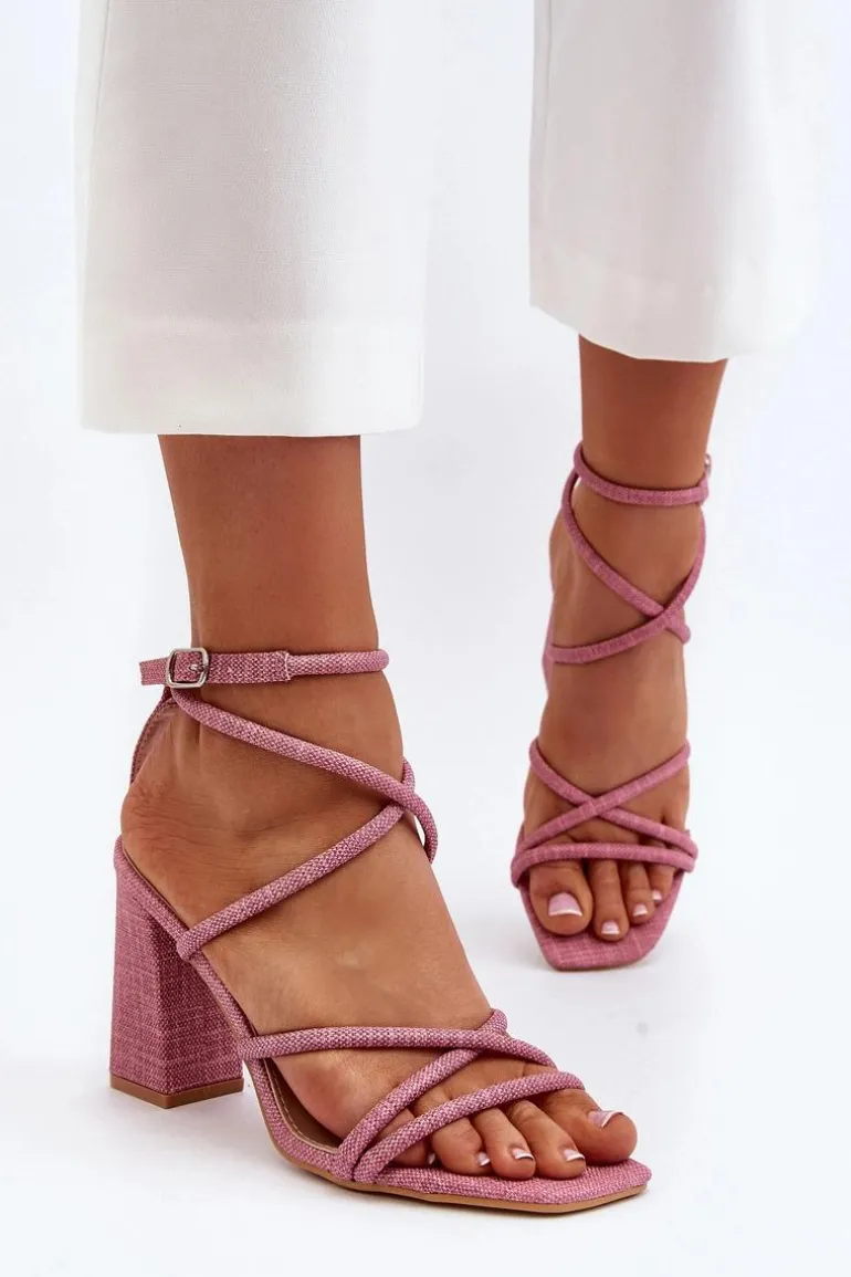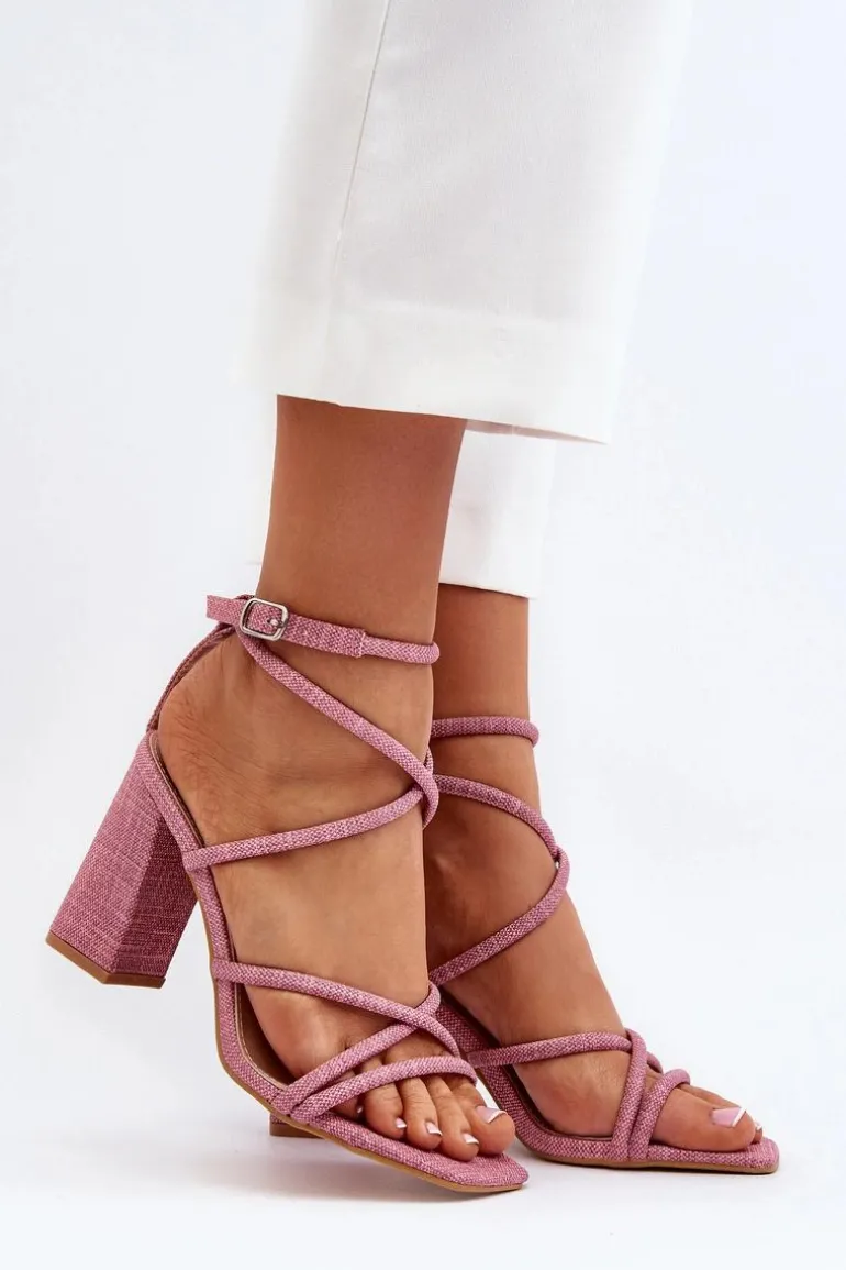 Sandały Na Słupku Z Paskami Różowe Herfiana