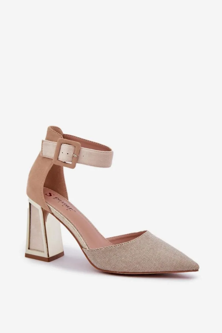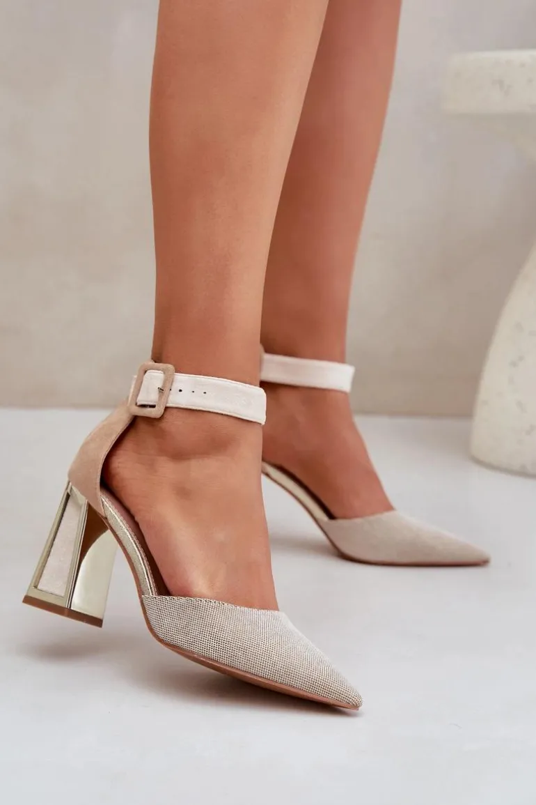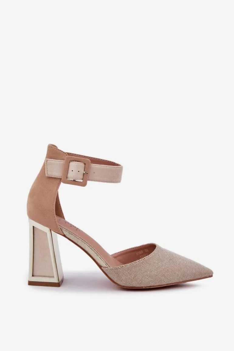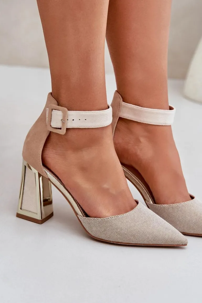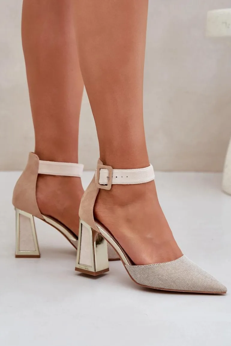 Sandały Na Słupku Ze Szpiczastymi Noskami Beżowe Gekkaria